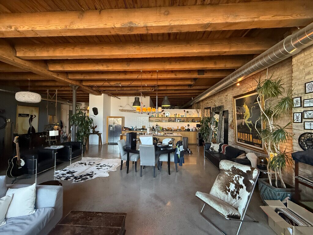 Live large in this stunning 2 bed, 2 bath loft offering an incredible 2,500 square feet of open space. Concrete floors, soaring wood-beam ceilings, and exposed ductwork give it that true industrial loft feel, while updated appliances and modern finishes add everyday comfort. With expansive living and dining areas, oversized bedrooms, and plenty of room to work or entertain, this unit is a rare find. A perfect blend of raw character and refined style.