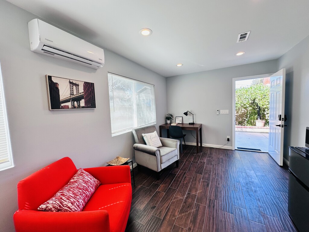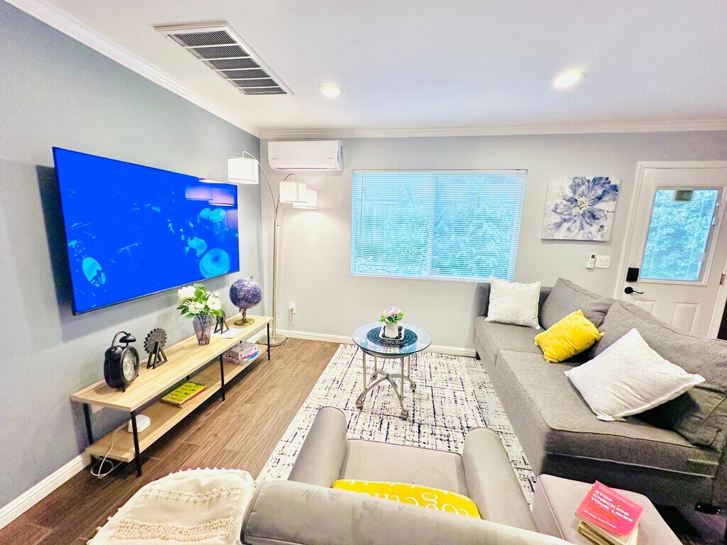 Beautiful 1 Bed / 1 Bath – Walk to CSUF – Fully Furnished – Utilities Included Welcome to this beautifully designed 600 sq ft private unit offering comfort, privacy, and unbeatable convenience. Located just 0.6 miles from California State University, Fullerton (CSUF), this unit is within walking distance to campus—perfect for students, faculty, or working professionals. This fully furnished unit features 1 bedroom, 1 bathroom, an open-concept living area with sofa and TV, and a modern kitchen with a spacious island and seating. A dedicated workspace (desk) is also included, ideal for studying or working from home. Enjoy complete privacy with your own separate entrance and no shared living space. Key Features: * Fully furnished (bed, sofa, TV, etc.) * Private 1 Bed / 1 Bath * Separate entrance (no shared space) * Walking distance to CSUF (0.6 miles) * In-unit washer & dryer * Air conditioning & heating * Full kitchen with large island & seating * Open living area with TV * Dedicated workspace * Driveway or street parking available Rent: $2,250/month Utilities Included: Electricity, Water, Gas & Internet Additional Info: * Quiet, safe residential neighborhood * Ideal for couple * No smoking Please message to schedule a showing or request an application.