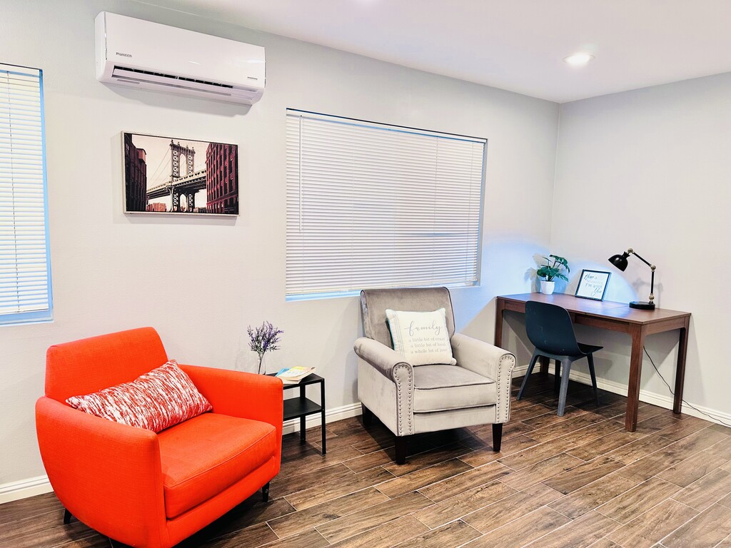 Beautiful 1 Bed / 1 Bath – Walk to CSUF – Fully Furnished – Utilities Included Welcome to this beautifully designed 600 sq ft private unit offering comfort, privacy, and unbeatable convenience. Located just 0.6 miles from California State University, Fullerton (CSUF), this unit is within walking distance to campus—perfect for students, faculty, or working professionals. This fully furnished unit features 1 bedroom, 1 bathroom, an open-concept living area with sofa and TV, and a modern kitchen with a spacious island and seating. A dedicated workspace (desk) is also included, ideal for studying or working from home. Enjoy complete privacy with your own separate entrance and no shared living space. Key Features: * Fully furnished (bed, sofa, TV, etc.) * Private 1 Bed / 1 Bath * Separate entrance (no shared space) * Walking distance to CSUF (0.6 miles) * In-unit washer & dryer * Air conditioning & heating * Full kitchen with large island & seating * Open living area with TV * Dedicated workspace * Driveway or street parking available Rent: $2,250/month Utilities Included: Electricity, Water, Gas & Internet Additional Info: * Quiet, safe residential neighborhood * Ideal for a couple * No smoking Please message to schedule a showing or request an application.