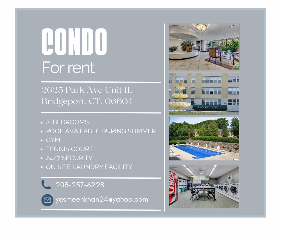 Discover an exceptional opportunity to live at Embassy Towers in Bridgeport! This desirable first-floor Unit 1L offers easy access and comfortable living in a full-service high-rise community. Enjoy resort-style amenities including an in-ground outdoor pool, 24-hour security, elevator service, fitness facilities, and beautifully maintained grounds.