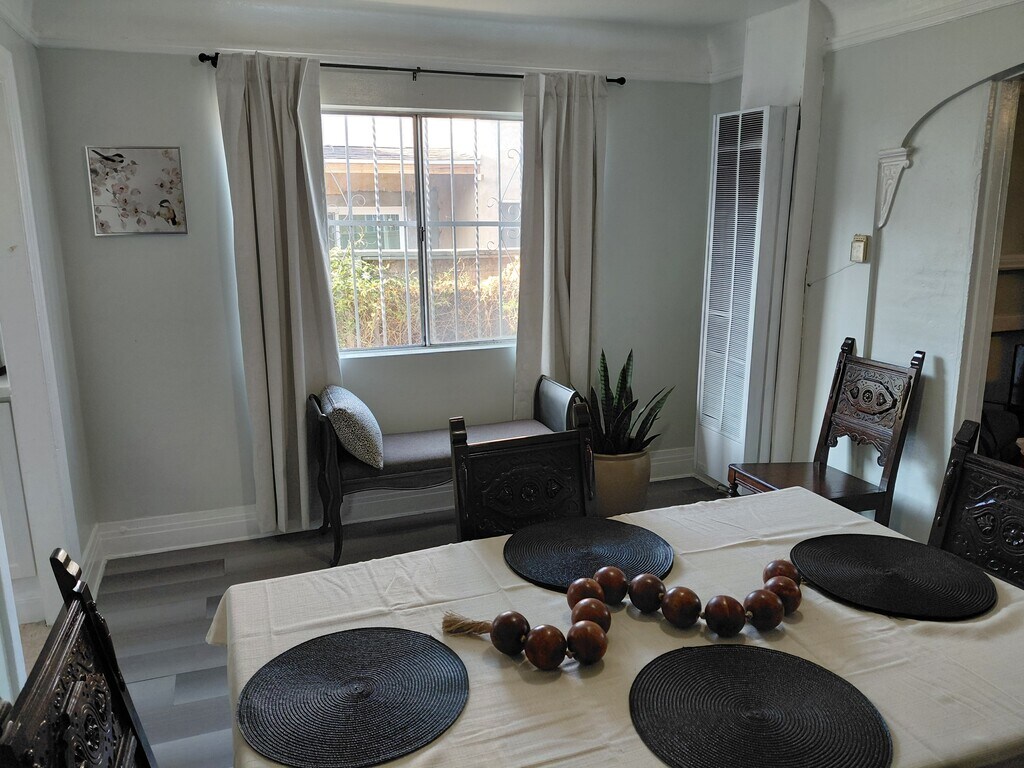 - Unit Description- Bright & Spacious 2BR Duplex | Fully Furnished | West Adams Welcome to your West Adams home away from home! This 1,100 sq. ft. 2-bedroom, 1-bath duplex comfortably sleeps 4 with a queen bed in each room and comes fully furnished for a hassle-free stay. Inside, enjoy a large fully equipped kitchen and dining area, in-unit laundry, generous walk-in closets, and a cozy living space with a big-screen TV. Step outside to a private front patio and shared gated yard. Essentials like high-speed WiFi, linens, towels, and kitchenware are all included—just move in and feel at home. Perfectly located just 0.8 miles from the Metro E Line, steps to bus stops, and within walking distance to restaurants, cafés, bars, and grocery stores. Easy Metro access to USC, Downtown LA, and Santa Monica, and only 1.5 miles from Kaiser Baldwin Hills Medical Offices. Utilities included up to $200/month. Apartment Unit: 2bd 1 ba 1,100 sq ft unitApartment Model: 2bd 1 ba 1,100 sq ft unit - 2627 Buckingham Rd$2,9952 Bedroom, 1 Bath, 1100 sq ftAvailable Now