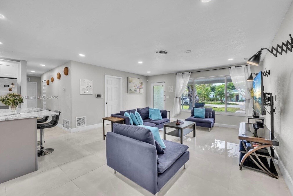 Courtesy of Silver Water, LLC.--FURNISHED -Renovated 4BR/2BA pool home in Connor Estates, North Pompano Beach, east of Federal Hwy 1. Features open kitchen with stainless appliances, indoor laundry, new porcelain floors, updated bathrooms, recessed lighting, and impact windows/doors. Enjoy a front porch, large driveway, carport, and fully fenced backyard with heated saltwater pool, artificial grass, outdoor seating, BBQ, and ambient lighting.