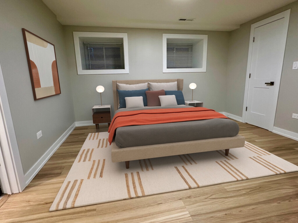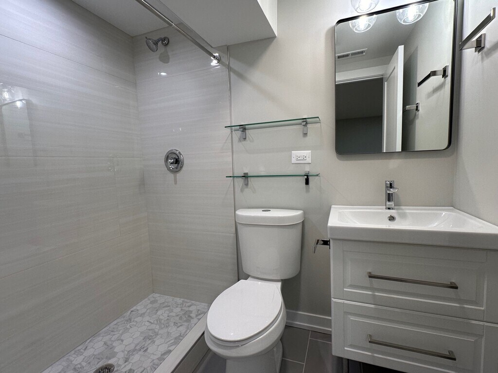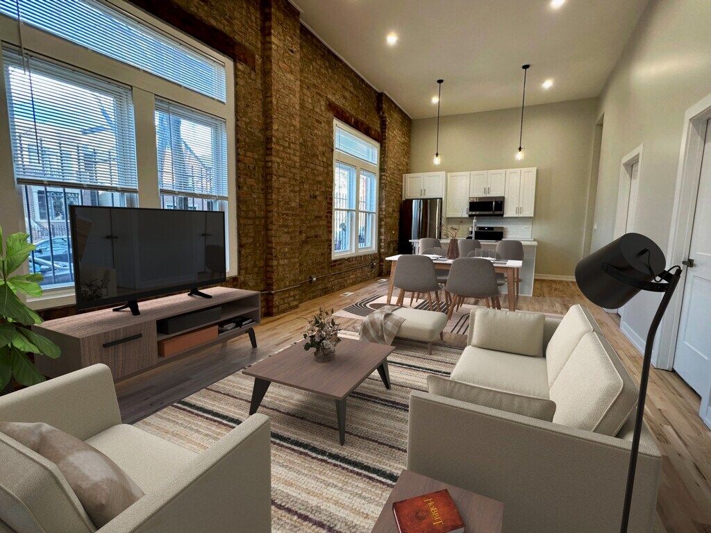 Logan Square 4BD / 3BA Duplex Apartment | 12' Ceilings | 3 of the bedrooms with en-suite bathrooms | Steps to the 606 One of the most unique apartments available in Logan Square. Beautiful first-floor duplex-down apartment with soaring 12-foot ceilings, exposed brick walls, and abundant natural light. The layout includes three primary bedroom suites with private en-suite bathrooms, several with walk-in closets, and one with a connected private office! Lower level has full ceiling height and plenty of light. All 4 bedrooms comfortably accommodate queen or king beds. Approximate room sizes: 16x11, 14x12, 12x12, and 12x10. Fully renovated designer kitchen with quartz countertops, large island with seating, 42" shaker cabinets, stainless steel appliances, Bosch dishwasher, and disposal. Additional features include: - Refinished hardwood floors - Central HVAC - Samsung front-load washer/dryer - Warm recessed LED lighting - Large dedicated water heater - Generous closet storage - Bike storage room - Shared rooftop deck with seating and grill. Location highlights - 1 block to The 606 Trail - 2 blocks to Armitage restaurants & bars - 7-minute walk to Western Blue Line - Easy street parking - Heart of Logan Square / West Bucktown Available June 1. Pets considered case-by-case. Owner is a licensed Illinois real estate broker.