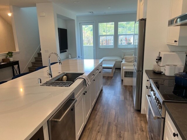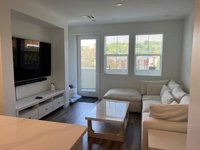 Look out your windows and patios to rolling hills and mature trees from your new home at the back of this desirable community in the newly built Round Barn Village condominium complex. Inside this new home, you'll find 9' ceilings with windows and natural light at every turn. Laminate floors throughout, roomy downstairs den/office/gym/play room. Beautiful kitchen with quartz countertops, gas range, and a huge island that has plenty of room for seating. Family room with large windows and a patio overlooking the hills of Fountaingrove. Dining room with more windows and natural light. Stacked washer/dryer. A convenient office nook 1/2 bath. Spacious primary bedroom has a luxurious bathroom with walk in shower, walk-in closet and separate toilet room. Two additional bedrooms at the end of the hall. Second full bath with tub/shower combo. Solar panel system that greatly reduces energy bills. Attached two car garage. Central Heat and Air. Enjoy the community pool, spa, playground, and multiple parks. Close to so many conveniences. You are walking distance to many Round Barn businesses, and only a short drive to a variety of stores and restaurants, Regional parks, and the Luther Burbank Center for the Arts. Easy access to Highway 101. No smoking, no drugs Your polite dog, under 45 pounds and over one year old, may be welcome with an additional deposit. Sorry, we cannot accept cats in this home. Applicants must have excellent credit (700 FICO minimum) and proof of income equal to 2.5 times the monthly rent $35 fee per adult for credit check and processing of application. Additional pet deposit of $500 if your dog is approved.
