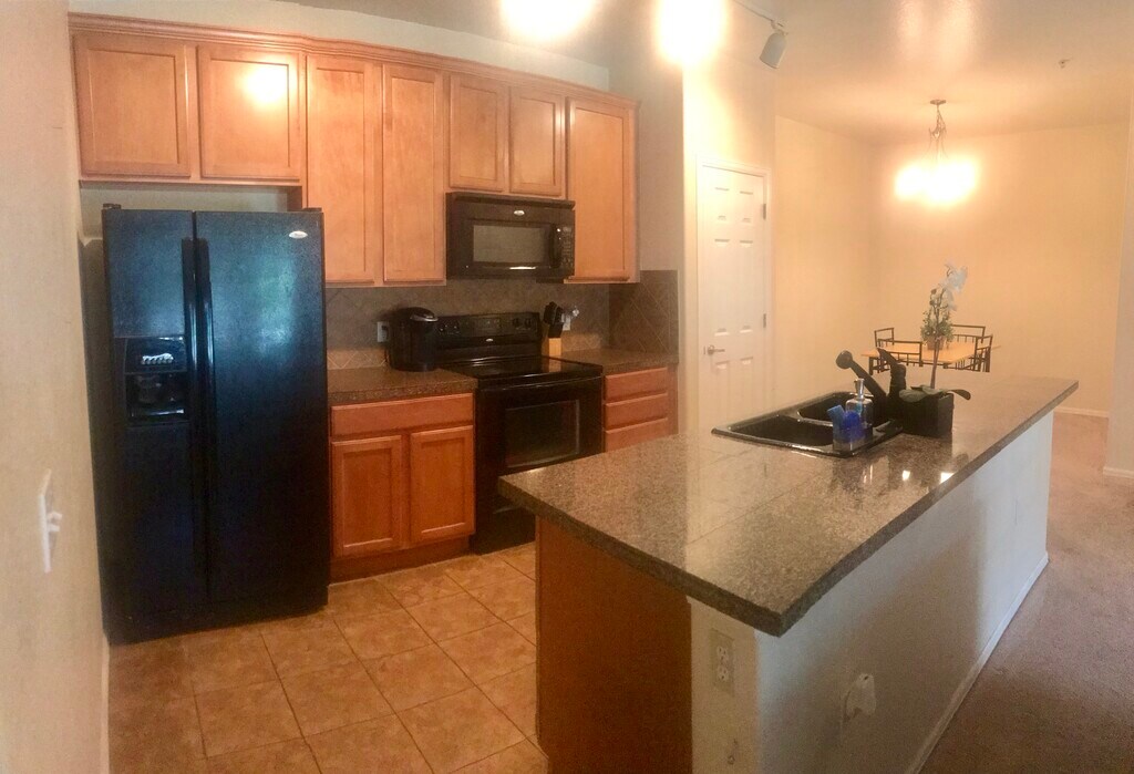 Situated in the Sterling Hills neighborhood. Close to shopping, light rail stations, and restaurants. This beautiful, well kept condo is on the first floor, approximately 974 sq ft. overlooking an open court yard. This complex offers a large pool, hot tub, club house and gym! Features: Granite counter tops Washer and dryer included Private balcony with exterior storage Over sized oval tub Track lighting in kitchen Spacious walk in master closet Kitchen island Kitchen faucet with pull out spray Updated vinyl floors Security glass doors on both front and back doors Kitchen appliances Ceiling fan with lights