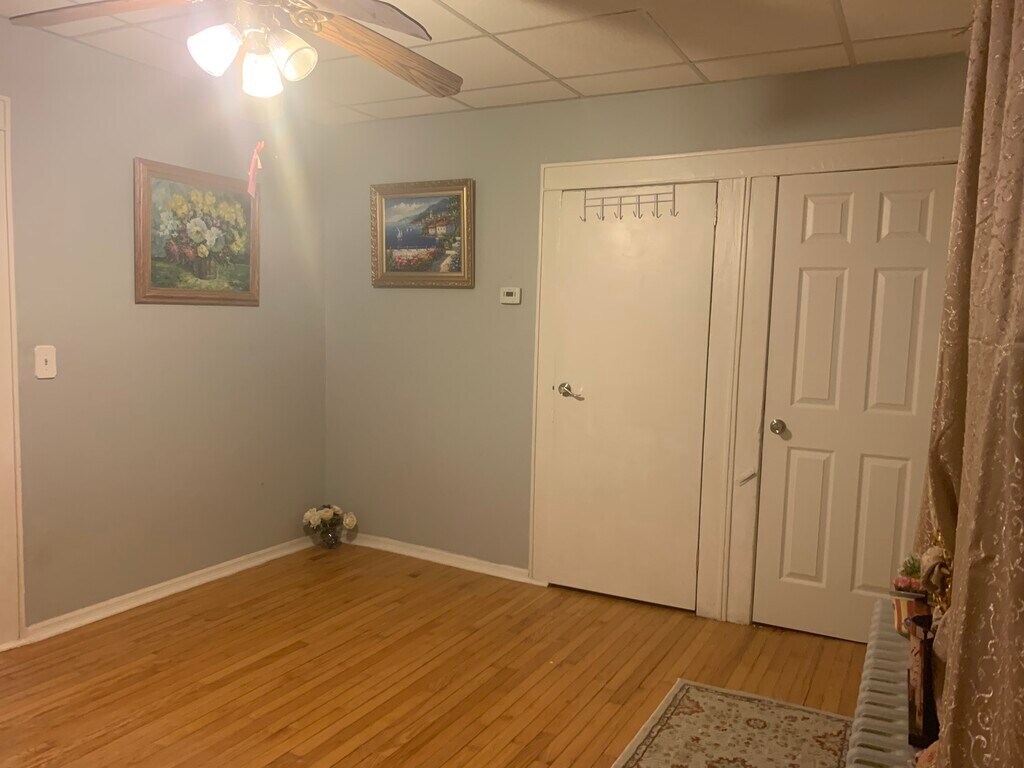 Centrally located, spacious, lovely 1 bedroom with the dining room in a great neighborhood. This lovely home has everything you need: beautiful eat in kitchen and custom made natural oak cabinets. Caring for your health and minimizing maintenance, we had installed hard wood floors and designed porcelain tiles throughout the whole home. The living room and dining room are spacious open area. Bathroom is treasured as well with custom made honey oak cabinets, linen closet and 5 feet tall designed porcelain tiles, 2 hanging lamps and convenient, large 3 sided 5 shelves mirror medicine cabinet. Bathtub area is filled with designed porcelain tiles top to bottom with massaging modes shower head and elegant shower curtain. There are 3 closets in the apartment and custom build in the shelved honey oak cabinet in the bedroom. This beautiful home is very economical: has double walls and floors, 3 fans, a/c, chandeliers so you won't spend much for utilities. Great location: one minute to a park, town center, shopping malls, main street, post office and many routes and highways like 22,28, 202, 206, 287, etc. This treasured home is surrounded by the garden and is located in a good, safe and friendly neighborhood. Optional garage and use of the unfinished basement if you would like to. You will be happy and delighted living in this lovely home!