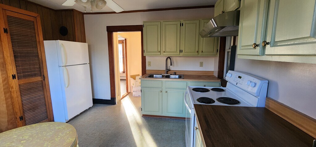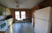 First floor apartment in a two story duplex. Eat-in kitchen, screened, roomy front porch. Living room, dining room, two bedrooms, full bath with tub/shower. Back entry porch with storeroom. Quiet neighborhood. Quiet, single upstairs neighbor. Off street parking for two cars. Heat, water/sewer, trash and snow removal included.