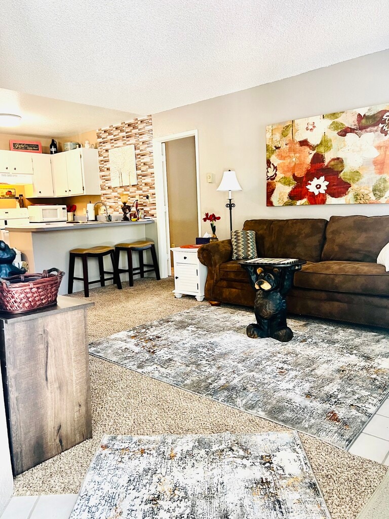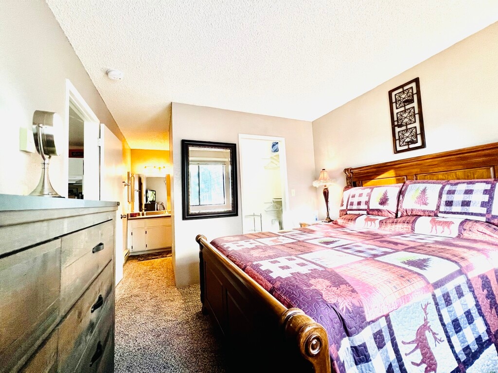 FURNISHED just bring your suite case- 2 smart TV's- electric fireplace- 2 step in closets - master has an ensuite, queen bed - new stainless appliances- sitting bar- nice patio- desk very very clean up to date. Close to all lakes, ski resort, Summit Health Care, golf courses, walking paths, night life, shopping. In the Pine trees