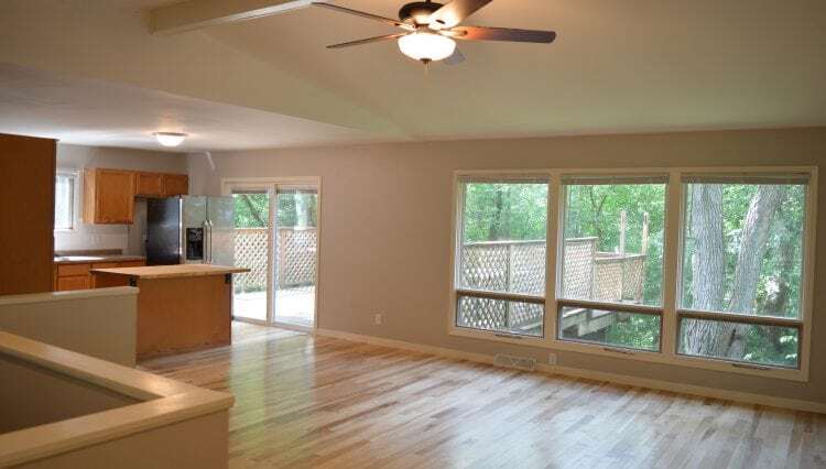 Rent this spacious 4-bedroom house, conveniently located near McKee Road and HWY 18 with quick access to Verona, West Madison, and the Beltline. Through the front door is an open floor plan featuring a large living room with vaulted ceilings overlooking a fully equipped island kitchen with a breakfast bar. Down the hall are three bedrooms serviced by a full bath. A walk out to a huge back deck is off the kitchen. The partially finished lower level offers a rec room with a walkout to the backyard. A large fourth bedroom with a private full bath featuring a marble countertop and a tiled tub/shower are also on this level. Laundry facilities and extra storage complete this level. Outside this home has a 2-car garage and a huge back deck that overlooks wooded privacy. The fireplace is for aesthetic purposes only and is non-operational. 2 Car Garage Central Air Dishwasher Fenced Yard Finished Lower Level Hardwood Floors Island Kitchen Large Back Deck Main Floor Bedroom Private Backyard Professionally Managed Storage Space Washer and Dryer