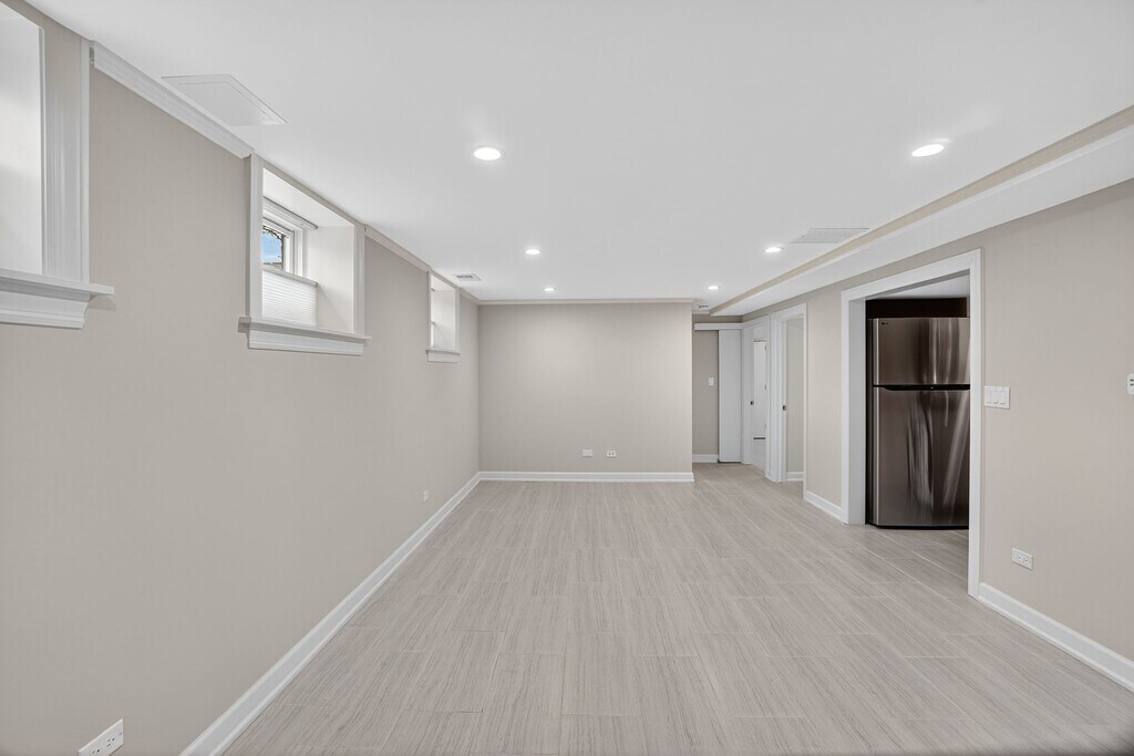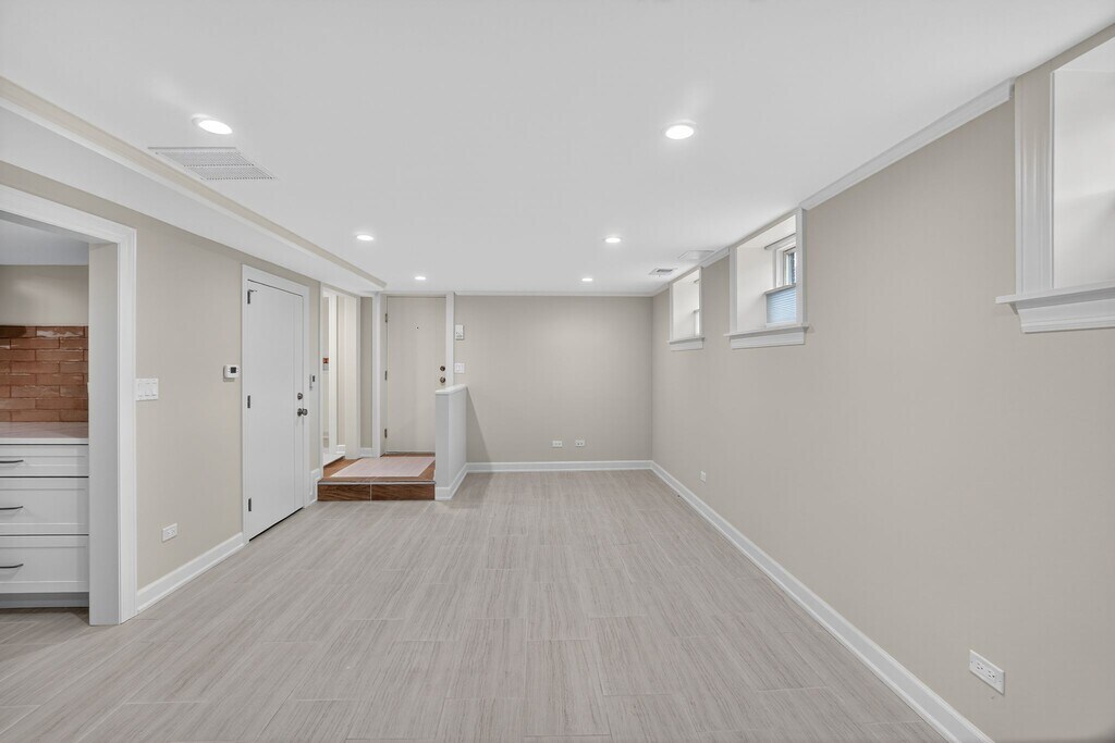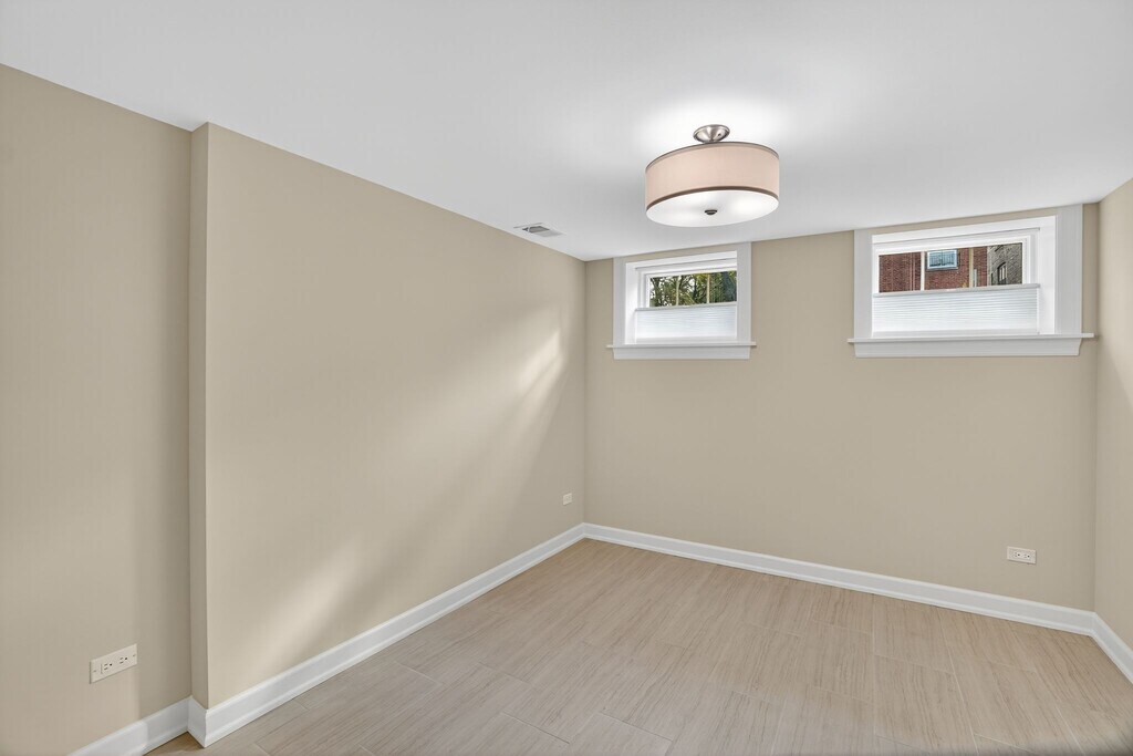 Basement floor 2-bedroom unit. Lots of natural light. Security deposit, credit check and one-year lease required. Open floor plan with combined dining and living room area. Central air & heating, in-unit laundry, SS appliances, granite countertops and fine cabinetry with porcelain backsplash & heated flooring option. Generous size bathroom with tub. Comfortable size bedrooms with fully organized closets. All new windows with cordless cellular shades. Tenant pays for electrical and gas. Freshly painted. Garage parking available for a fee. Call/text to view unit.