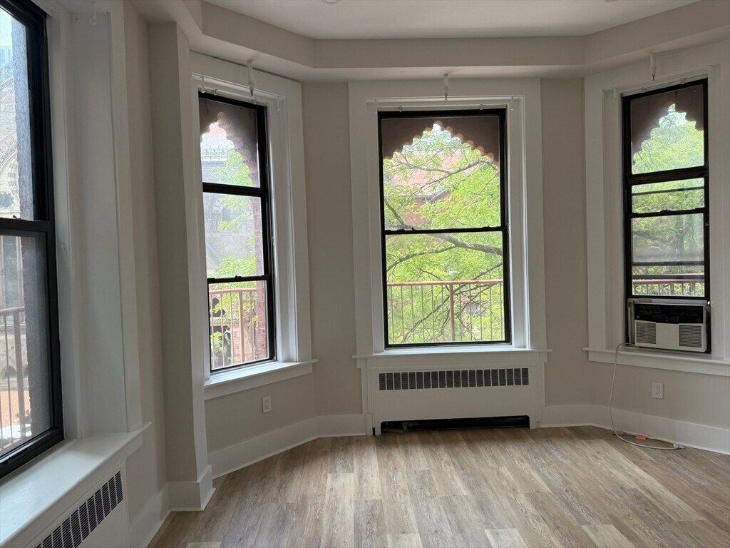 Spectacular Back Bay location! Steps to Copley Square, Newbury Street, and the Esplanade, this recently renovated 2 bedroom features a custom granite/stainless kitchen, high ceilings, and oversized arched windows with views of Dartmouth St, the Boston Public Library, and Old South Church. Ample closet and built-in storage throughout. Elevator building with common laundry on every floor, intercom security, daily-cleaned common areas, on-site management, and a stunning common roof deck with panoramic city views.