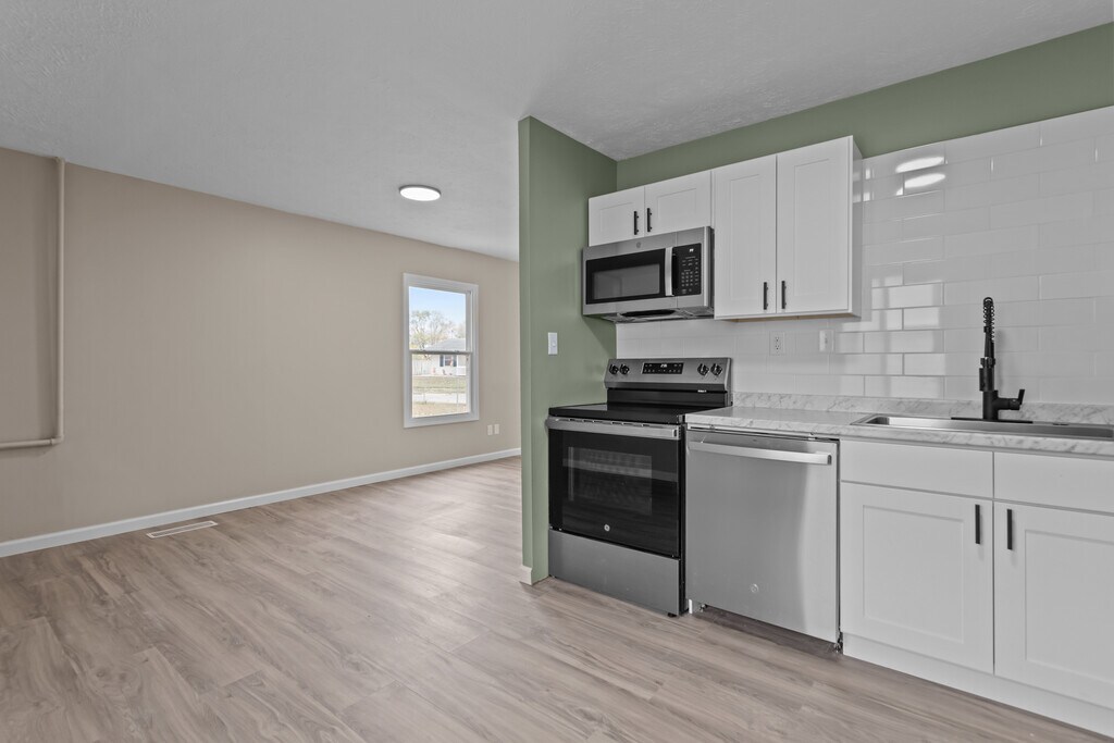 Recently renovated 4-bedroom, 1.5-bath ranch offering 1,120 sq ft of living space and a 2-car detached garage. This updated home features a new kitchen with modern counters, stainless steel appliances, and a stylish backsplash. Both bathrooms have been refreshed with a new tub and surround, vanities, and fixtures. The entire home has been freshly painted and finished with new luxury vinyl plank flooring and updated lighting throughout. This home also features central air and vinyl windows. HUD vouchers accepted.