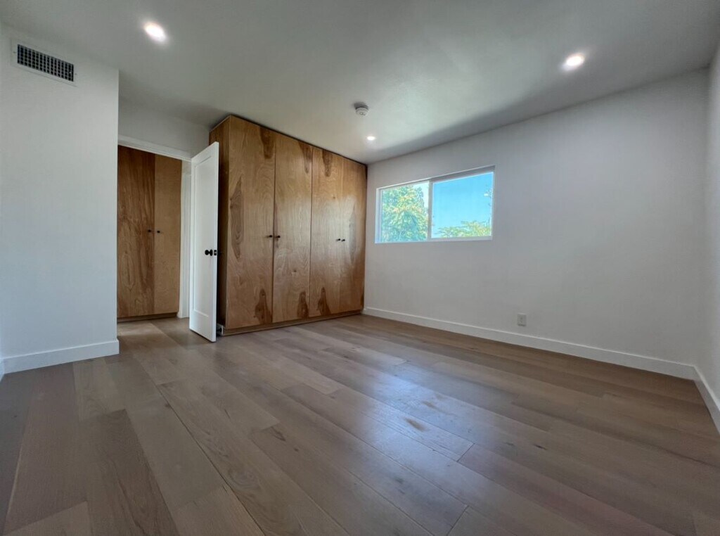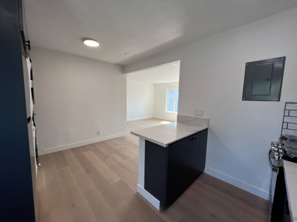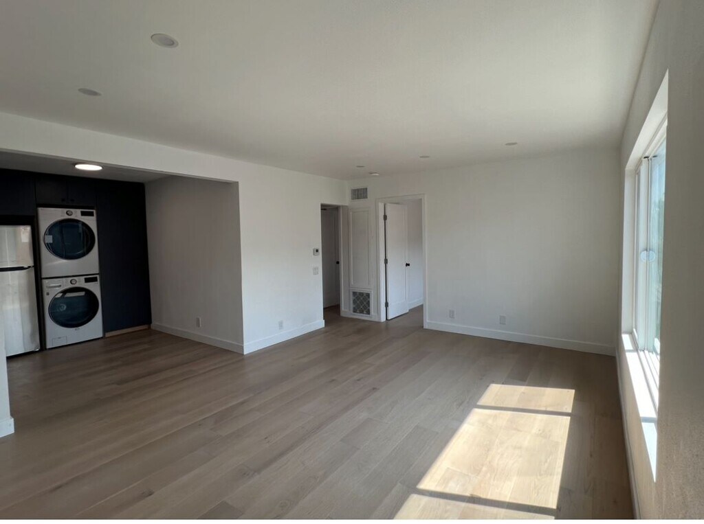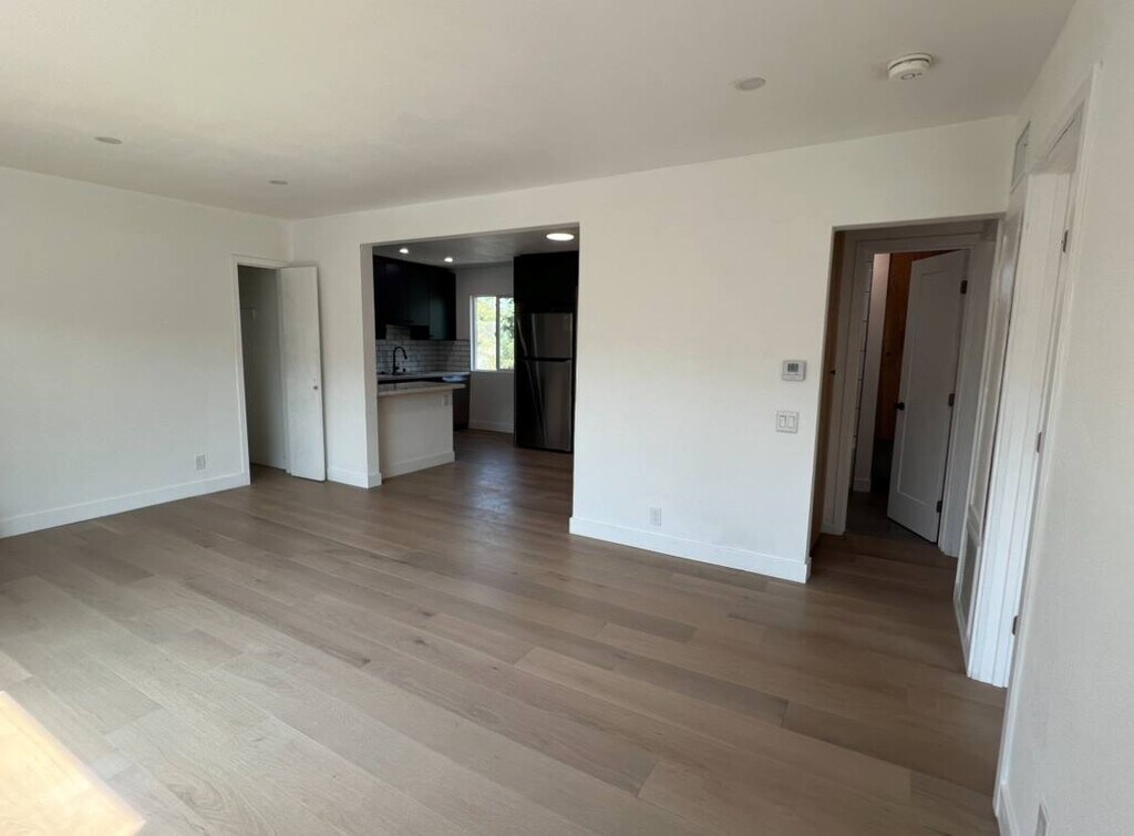Spacious living room and bedrooms. Apartment is an upstairs unit in a 2 story, fourplex. Unit Details: - beautiful real wood flooring throughout, quartz counter tops and plenty of space. - Upstairs unit in a 2 story, fourplex. Appx 850 sq. ft - One assigned parking space included. Plenty of street parking available in front of the property. - Appliances included (Gas stove, microwave, refrigerator, dishwater, ) - Unfurnished “as-is” apartment - In-unit Laundry - A/C and heat - No Smoking Utilities: - Water included.