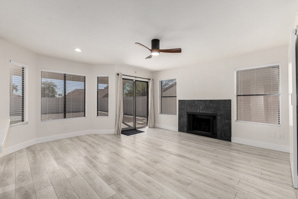 Fully remodeled 3 bed 2.5 bath home for rent by owners. Modern updates in all bathrooms and kitchen including stainless appliances, new vanities, matte black hardware, new interior and exterior paint, new sunshades on all windows, easy maintenance turf, rock and paver back yard with low maintenance desert landscape upfront with brand new irrigation. Brand new roof ensures safety in Monsoon season. Kitchen has modern dual color scheme and white quartz counters with a large ss farm sink. Luxury vinyl plank flooring in main areas and two rooms with modern tile in the bathrooms. Matching ceiling fans in all rooms and modern lighting throughout the home. Extra garage storage cabinets built in and a new side gate for easy access and maintenance. Also has a security system installed with all hardware if tenant wants to pay for monitoring system for added security. We take extreme care and pride in our rental properties and would love to find a great tenant for this home! PS it's also walking distance to all zoned schools (top rated) and a local park with extensive walking trails! Access to all 3 community pools, tennis/pickleball/basketball courts and hot tubs provided with rental at no extra cost. Move in special with a 2 year lease only. No smoking. Tenant pays all utilities and cares for landscape maintenance (weeds) per HOA. Rent includes HOA dues, tenant has full benefit of HOA amenities and is will have to pay for any HOA fees for violations. Tenant may opt to pay for optional security service as well.