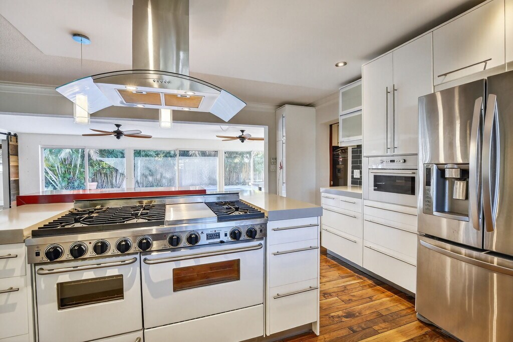 Oversized home in sought after Coral Ridge. Open floor plan with chef style kitchen, gas rage, wine fridge, hidden storage, white and frosted glass cabinets. Private backyard with a long pool, covered patio, summer kitchen and beachy landscaping. Inside are 2 bedrooms +Office or 3rd bedroom, 2.5 baths. The primary suite includes a walk-in closet and en-suite bath. Cabana bath with pool access, true laundry room, 2 car garage. Just minutes from the beach, Coral Ridge Country Club, dining, and shopping. Pets considered, case by case. Rapid application process.