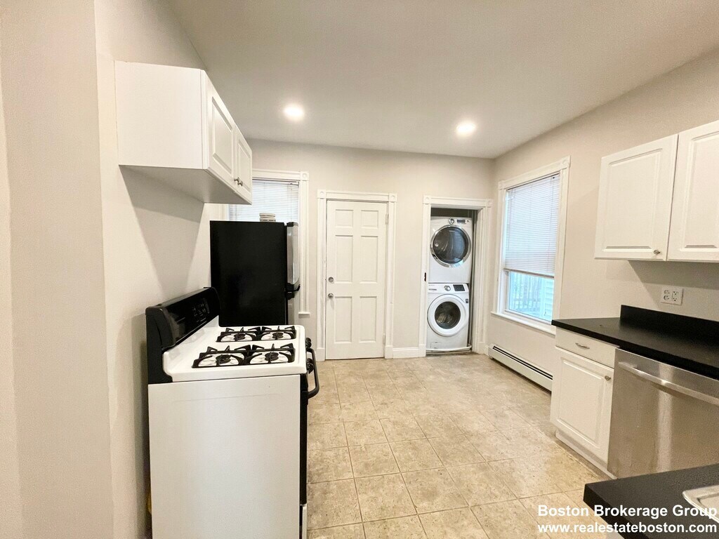 Two-bedroom, one-bath unit in Dorchester with in-unit washer and dryer. Features include an eat-in kitchen with new appliances, hardwood floors, and a modern bath. Private deck and access to a fenced yard. Bicycle storage available. Street parking. Close to UMass Boston and Northeastern.