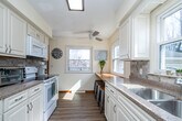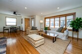 Welcome to this inviting and well-appointed 3-bedroom, 1-bath home—perfect for families, professionals, or extended stays. The main level features a bright living room with a cozy stone fireplace, comfortable seating, and warm hardwood floors, flowing into a charming dining area and a fully equipped kitchen with ample counter space and cabinetry. Downstairs, enjoy a large finished basement designed for relaxation and entertainment, complete with a media area, sectional seating, and a private office—ideal for remote work or quiet study. Step outside to a generous, fully enclosed backyard with a tall wooden privacy fence, offering a safe and peaceful space for family, pets, or outdoor gatherings. An oversized garage provides plenty of room for vehicles, storage, and gear. Comfortable, clean, and thoughtfully designed, this home offers space to unwind, work, and enjoy both indoor and outdoor living. Highlights: 3 bedrooms | 1 full bath Cozy living room with stone fireplace Fully equipped kitchen & dining area Finished basement with media room + private office Oversized garage Large fenced yard with full wooden privacy fence Hardwood floors & abundant natural light A perfect blend of comfort, space, and privacy for your next stay.