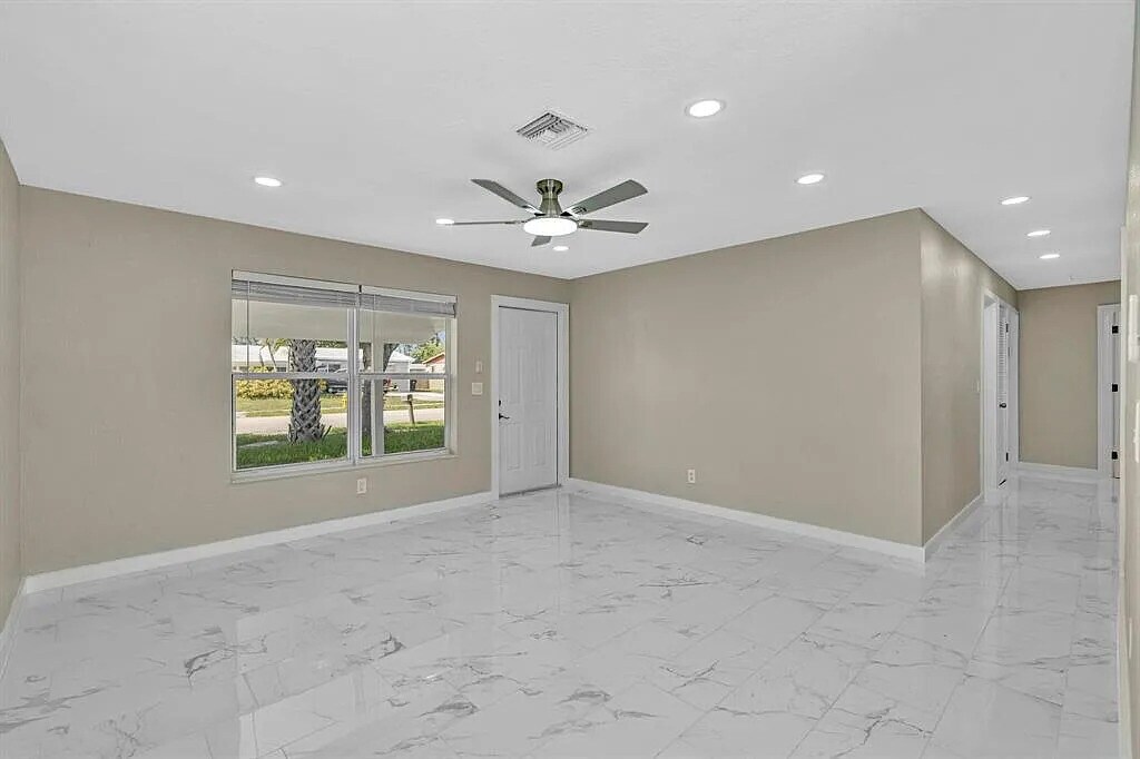 Gorgeous, immaculate large 3-bedroom, 2-bathroom single-family home with a brand-new roof, fresh exterior and interior paint, central A/C, fans, new plumbing and electrical systems, hurricane-impact windows and doors, porcelain tile floors, new bathrooms, and a fully updated kitchen with new appliances. This bright and spacious home features an airy, open layout perfect for families and entertaining. The large backyard is fenced and offers ample space for outdoor activities, and includes a detached unit with laundry, A/C, and extra storage, adding versatility to the property. Concrete and circular driveway for ample parking. New rain gutters and roof insulation for energy savings. Rent includes lawn care and pest control. Available October 1st. Hurry! This beautiful home will go fast. Call or text Natalie