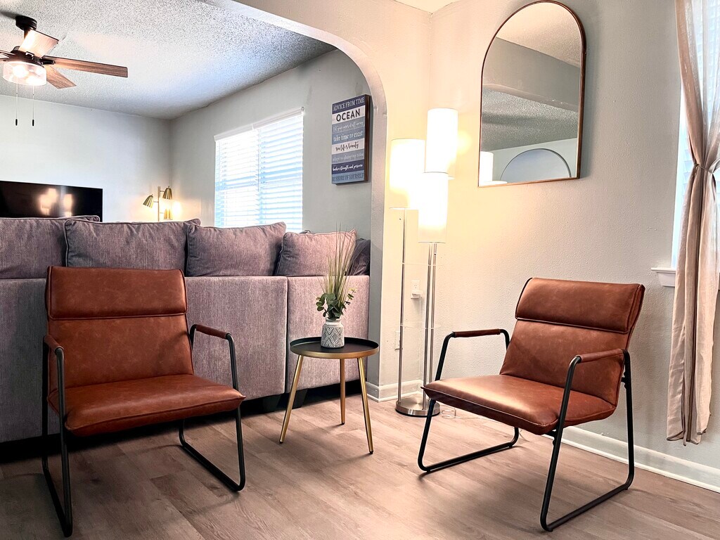 This beautiful, cozy home located on the Scenic Bluffs. It’s about 2.200sq. ft. of space with a sunroom, 5 Bedrooms, 2 Baths, an extra vanity. 7 Beds, 2 Kings, 2 Queens, Twin over Full Bed, Queen Sofa Bed. Charming Family-Friendly Neighborhood, about 15-20 mins to the Beach, minutes to Airport, Cordova Mall, Restaurants and many stores. Furnished home. Short-term or long-term available. Call us for more information if you’re interested.