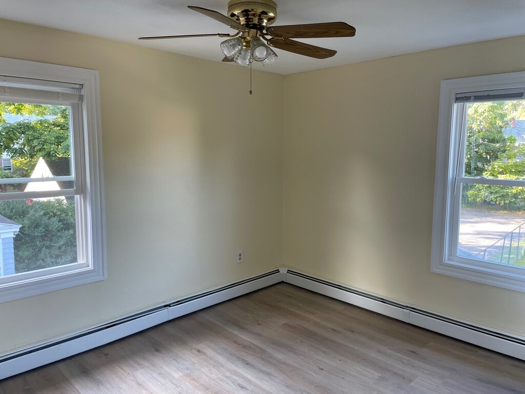 Sunny spacious 2 bed thoroughly renovated. Newly painted walls and ceilings. All new windows and new moldings insulated windows. Insulated, attic as well... Kitchen...All new cabinets and pantry cabinets, New Corian counter tops. Kitchen tiled floor. Gas Stove, Microwave and refrigerator included. Tiled bath, bathtub and shower enclosure. All new flooring throughout Living room, bedrooms and hallway. Ceiling fans in each room.