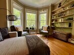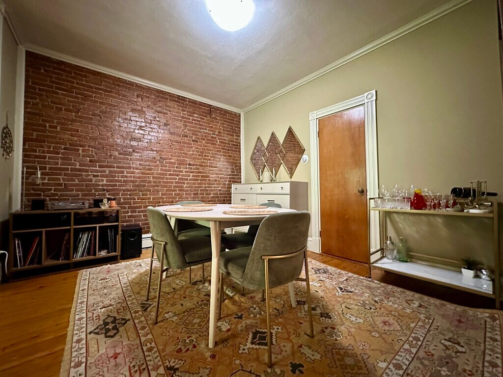 Welcome to 279 Chestnut Avenue #2, a beautifully updated 2-bedroom, 1-bath home offering character, comfort, and prime Jamaica Plain location. Step into a light-filled living space with soaring ceilings, wide-plank hardwood floors, and thoughtful architectural details throughout. The bright bay-windowed living room features custom built-in bookcases and flows into a separate dining room accented by an exposed brick wall ideal for both everyday living and hosting. The spacious eat-in kitchen is a standout, with custom maple cabinetry, a newly installed gas stove, open shelving, and brand new tile. Perfect for cooking enthusiasts! Two well-separated bedrooms provide privacy, including a serene primary bedroom overlooking mature trees. The second bedroom includes a custom closet with a sliding barn door for added style and function. Additional features include: Private laundry and storage Plenty of natural light Dedicated off-street parking space Tranquil shared backyard and patio perfect for outdoor dining or quiet relaxation Nestled on a quiet residential street just minutes from Jamaica Pond, Centre Street, the SW Corridor Park, and Green Street T station Meticulously crafted by a master carpenter with architectural enhancements throughout, this home offers both charm and practicality in one of JP's most desirable neighborhoods. Don't miss this opportunity to make 279 Chestnut your home! Reach out to schedule a showing.