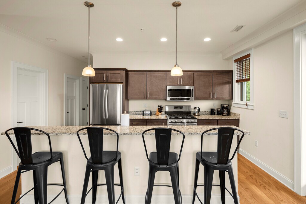 Available January 5th — Fully Furnished | All Utilities & Wi-Fi Included 2 Bedroom | 2 Bathroom | 1,200 Sq Ft | Second Floor Apartment | 30-Day Minimum Stay (Note) Security Deposit Based On Duration Of Lease Welcome to your stylish Asheville retreat, perfectly tailored for traveling professionals, medical staff, or anyone seeking a refined temporary home. This fully furnished 2-bedroom, 2-bathroom second-floor apartment offers comfort, luxury, and unbeatable convenience — just 2.2 miles from Mission Hospital and steps away from downtown Asheville. Located at the corner of Charlotte Street & East Chestnut, this residence provides immediate access to I-240, local restaurants, shopping, grocery stores & butcher shop, and the vibrant scene of downtown Asheville. Step inside to a bright, open-concept great room with beautiful hardwood floors and plenty of natural light. The living area features a smart TV, soundbar, and fireplace, while the dining space seats six comfortably, complemented by bar seating for four at the kitchen island. The chef’s kitchen is fully equipped and ready for anything — featuring stainless steel appliances, a gas range, granite countertops, and all the essentials for everyday cooking or entertaining. The primary bedroom includes private access to the large front deck, plus a spa-inspired ensuite bathroom with Payne tile floors, subway-tiled shower with glass panel, and granite-top vanity. The secondary bathroom offers a shower/tub combo with matching tile finishes. Relax or entertain outdoors on your spacious deck with comfortable outdoor furniture and sweeping views of downtown Asheville — the perfect spot for morning coffee or evening sunsets. Additional highlights include: • ALL UTILITIES & WI-FI INCLUDED • Rinnai tankless hot water heater for endless hot water • In-unit laundry room with LG energy-efficient washer & dryer • Ample parking with overflow • Luxury furnishings throughout • Fully furnished with minimum stays of 30 days or more • Maximum stay: 6 months or until July 1st, 2026 Enjoy modern living, a prime location, and flexible lease options — available for any duration above 30 days, up to the maximum stay.