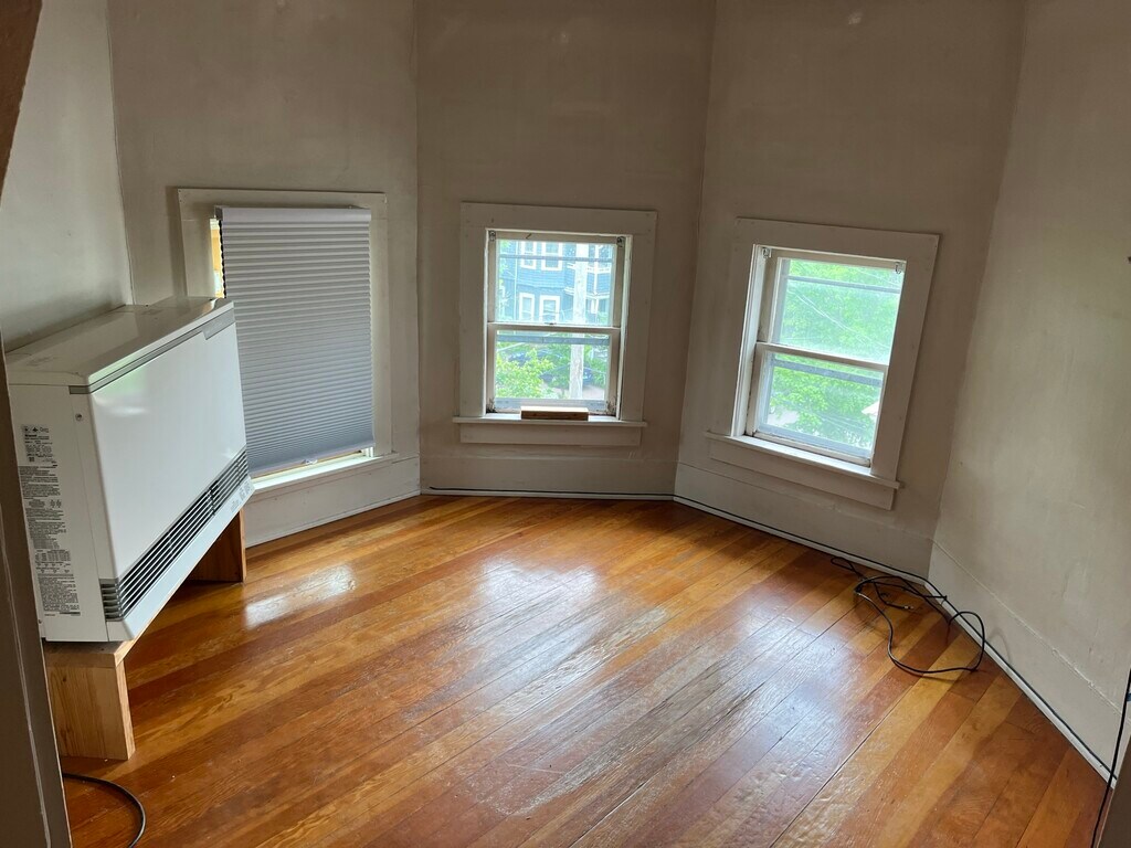 Off street parking, centrally located. Move in to a renovated 1 bedroom open studio apartment (entire 3rd floor) in a prime Burlington location. 5 min walk to UVM, hospital, downtown, Willard market, Henry's etc. On lovely Brookes Ave, a quieter street off the main drag but close to everything. Apt features many amenities and upgrades: hot water, trash, laundry on site, lawn care, off street parking. Heat averages historically low *43.61/month with VT Gas budget plan to request at sign up. Hardwood floors. Built-ins. Enclosed three season sun porch (with lock, security light) great for entertaining, potted flowers, bikes, skis/boards and/or for a mudroom. Yard space. Laundry on site! No smoking and/or waterbeds. Available June 1st, 2026. One year lease. Option for renewal. Close 5 min walk to everything hospital, UVM, Champlain, downtown, etc.!