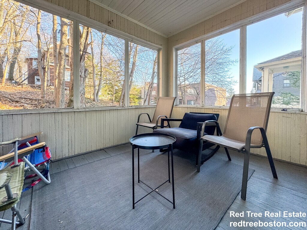 Updated bath and kitchen, gas heat with high efficiency boilers, new windows, 4 parking spaces and a screened porch. Living area is over 2000 sq ft. Coin-op laundry in the basement. Located in front of the new Waban Hill Reservoir Park.