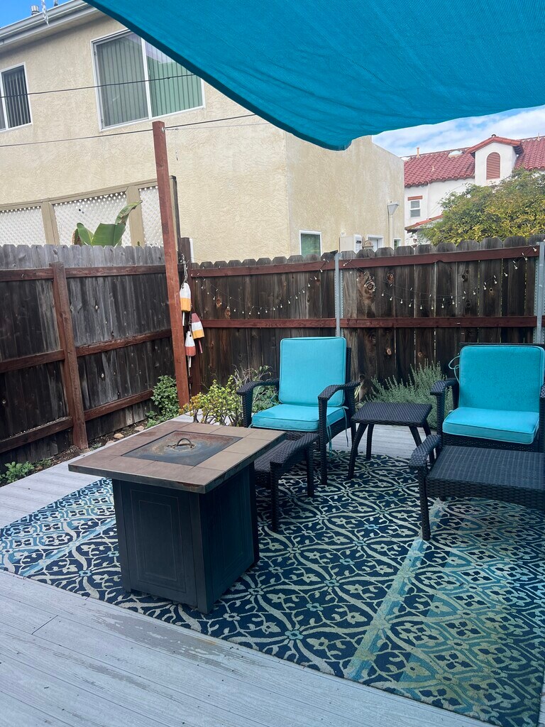 Live in the Village of Coronado Island, close to everything! 2 Blocks to the Bay, 1 Block from Orange Ave, (main street), Under 2 blocks to 2 grocery stores (Boney's and Smart and Final) and restaurants such as Cornado Brewing Co, Saiko Sushi, Village Pizza, Burger King, Rose Mary's Trattoria, Peohe's , Taco Bell, KFC, Il Fornio, Spiro's Mediterranean Cuisine, or take the Ferry to San Diego. 1 bedroom and bath upstairs and kitchenette, dinette, washer and dryer downstairs, with a HUGE back deck 24x24. It's on the back of a charming house with a separate entrance and private back deck. Available now with a minimum of a 1 year lease. Upstairs is a light and airy room with windows all around. Equipped with curtains to block light if needed. Fully furnished. Has an attached storage area approximately 3x5x5. The 24x24 backyard has a deck and shade sails. Downstairs is a kitchenette, full sized refridgerator, microwave, toaster oven, frying pan, regular coffee maker, and Pod coffee maker, and there is a propane grill on the back deck. Full sized washer and dryer downstairs. Window AC, TV's upstairs and down. Friendly , quiet pet upon approval. Street parking. Minimum requirements 700 credit score and income $7500. Owner is retired realtor. $2750 mo includes all utillies.