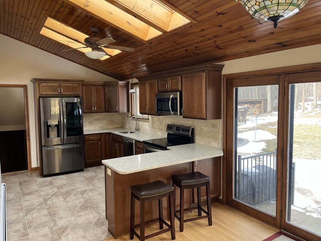 Experience the best of Berks County country living at this beautifully maintained 1,800 sq. ft. split-level home just west of Hamburg, PA Nestled on an extraordinary 11-acre property, this unique residence offers a rare combination of privacy, natural beauty, and community charm — all just minutes from major routes and town conveniences. Surrounded by wooded areas, open fields, and a large scenic pond, the setting feels like a private retreat. Enjoy direct access to Pennsylvania State Game Lands and nearby walking paths, making this home ideal for nature lovers, hikers, and anyone seeking peaceful outdoor living. Inside, the home is warm, inviting, and filled with natural light. Skylights brighten the updated kitchen, which features premium appliances and generous space for cooking and entertaining. A comfortable breakfast nook creates the perfect spot for morning coffee, while the spacious great room offers plenty of room for relaxing or hosting guests. The thoughtful layout includes three bedrooms, a dedicated den/office, and multiple baths for convenience. The master suite includes a private half bath, complemented by a full bath with tub/shower and an additional powder room. A charming front porch/sunroom provides year-round enjoyment of the surrounding views. The full basement offers excellent storage or flexible use space. Appliances include: • Side-by-side refrigerator • Stove and microwave • Washer and dryer • Full-size freezer Utilities are simplified with a $300 monthly usage allowance covering oil heat, electric, WiFi guest access, and trash disposal. The home is also cable-ready with internet available. Parking is convenient with two assigned spaces plus guest parking. Adding to the unique appeal, there are five additional apartments on the property, creating a friendly, community-oriented atmosphere while still maintaining privacy. For equestrian enthusiasts, a four-stall barn and pasture are available for additional rent — perfect for self-care horse owners seeking on-site accommodations. Location highlights: • Approximately 1 mile to State Game Lands • Easy access to Rt. 78 and Rt. 61 • 6.4 miles to Hamburg • 24 miles to Reading Pet-friendly options include up to two dogs (40 lb max) and up to three cats, with modest additional monthly fees. Horses are welcome with separate barn and pasture rental arrangements. Monthly Rent: $1,950 which includes $300 of electric and heat utilities per month. Lease Term: One-year lease with option to extend month-to-month If you’ve been searching for a property that combines space, natural beauty, flexibility, and convenience — this is a rare opportunity. Enjoy country tranquility without sacrificing accessibility and experience a lifestyle that feels like a retreat every day.