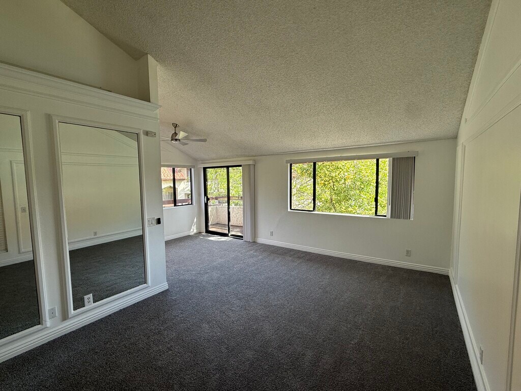 Condo 3 bdr. 2 bath.Upgraded upper corner unit with vaulted ceilings. Central air and heat. New carpet and paint.Tile floors in Kitchen and Bathrooms. Granite slab kitchen counters w/custom tile backsplash. Custom wall mirrors and mouldings. Upgraded bath with inside laundry. Balkony overlooks pool and spa., playground. 2 car garage. Swimming pool and spa. Water, HOA and trash included.