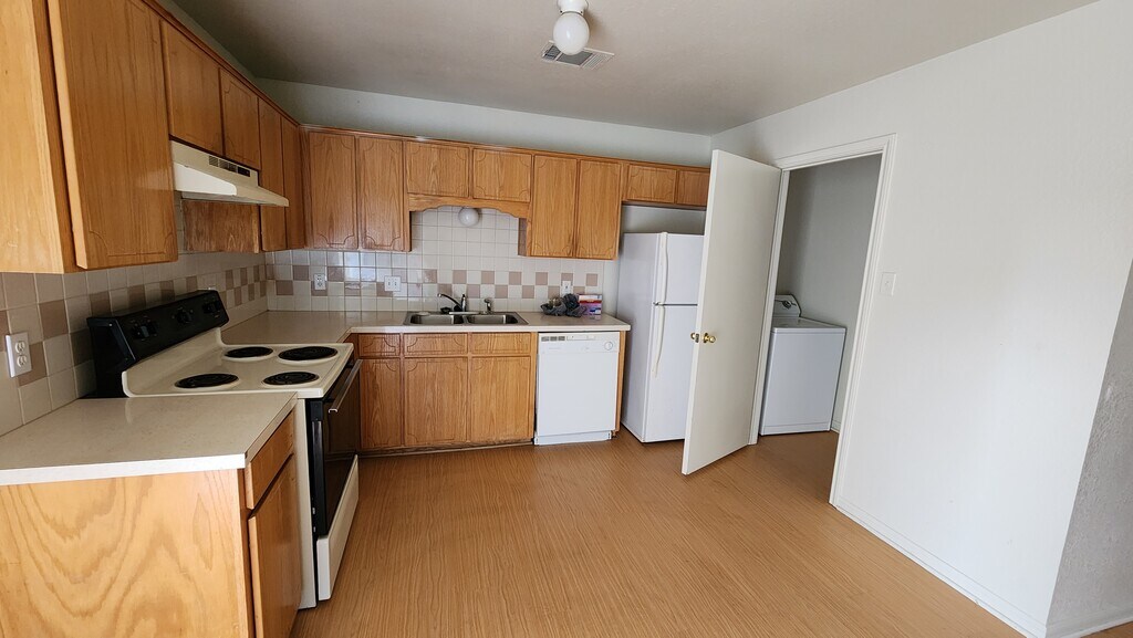 Large townhouse 2 bedroom, and 1.5 bathrooms offering a 1,150 square feet of total living space. Has backyard area. Comes with Appliances: Dishwasher, Stove, Refrigerator, Inside Laundry room with Washer & Dryer included, and plenty of countertop and cabinet space. New Air Conditioning Unit and ceiling fans for climate control. The 2large bedrooms are upstairs with 1 full bathroom. The downstairs has a Large Living Room and kitchen, laundry room, and Powder room( half bath). The exterior is well-maintained, contributing to the overall appeal of the property. This smoke-free home is ideal for those seeking a comfortable living environment. Very close to HEB store right by Old Fm Rd & Elms Rd, Close to Walmart & Lowes. Short drive to Fort Cavazos / Fort Hood, 14Hwy and more