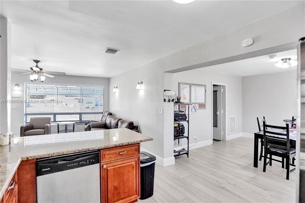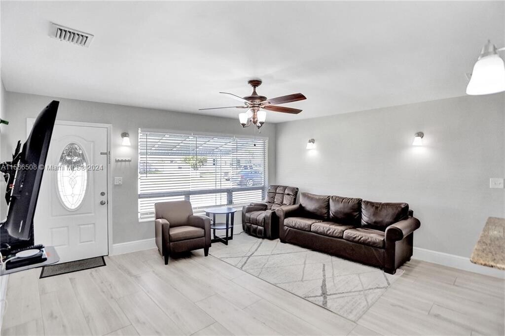 Newly renovated 2-bedroom, 1-bathroom residence with an additional office space, nestled in Pompano Beach. Recently installed roof in 2023, adorned with pristine porcelain tile flooring and a fresh coat of paint inside and outside. Enhanced with a modern air conditioning system and brand-new duct work. Ideal for hosting gatherings, boasting an open kitchen layout and a charming gazebo in the backyard, perfect for barbecue parties.