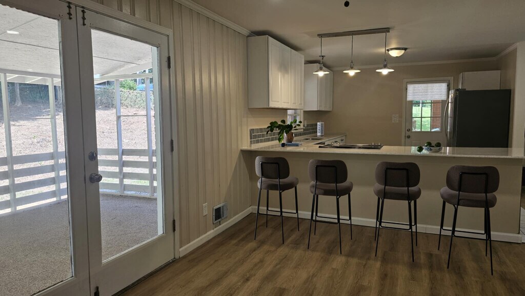 Great corner 1/2 acre lot in sought after Headland Heights neighborhood featuring newly remodeled 1600 sq. ft. 3 bedroom, 2 bath brick ranch home. All new paint and LVP flooring throughout with Quartz countertops and breakfast bar, stainless appliances and tiled kitchen and baths. Fenced rear yard with large covered rear deck and private driveway with 2 car carport. Pets allowed with screening and fee. All Lawn Care, Landscaping and exterior home care included in rental cost. Perfect Location for commuting to Hartsfield/Jackson, Movie Studios like Tyler Perry and many other prime corporate workplaces. Now accepting applications and scheduling showings for a November 1 Move in.