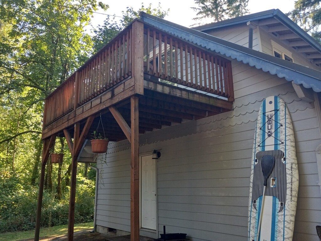 2 bed, 2 bath house in Paradise River Community within walking distance to the swimming hole. 2 story, laundry room, storage shed, upstairs balcony. Borders protected forest land with trails for residents. Cat or small dog with nonrefundable pet deposit.