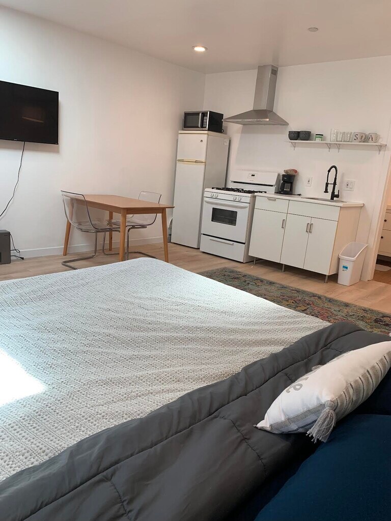 Available for 3 month, 6 month and 12 month lease. Beautiful brand new studio back house. Located in quiet neighborhood with plenty of street parking (with permit included) Features: -WASHER AND DRYER in unit -42” TV -AC/Heat -Hard wood floors -Skylight -Stove, refrigerator and Ikea kitchen -Wifi Only (Works great) Minutes from Expo train, downtown Culver City and Helms Bakery arts/design center Available for short-term lease and long term lease. Furnished or unfurnished. Utilities Included