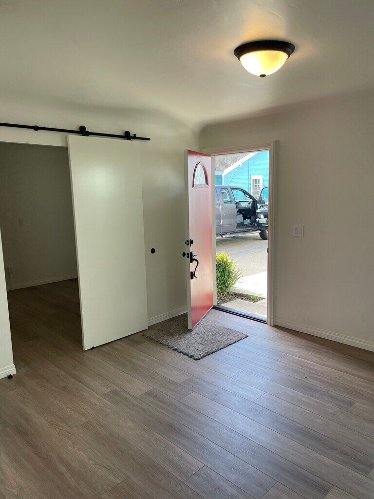 Fresh and modern Duplex completely remodeled. Quiet unit at the end of driveway. Small fenced back yard with laundry room attached. Granite countertops, new cabinets, new appliances. New floors and paint. All new bathroom with tub and shower. Great area close to shopping, parks and beach. Extra storage area included. One onsite parking and street parking available. Rent does include a $150 allowance for all utilites as shown. No cable or internet.