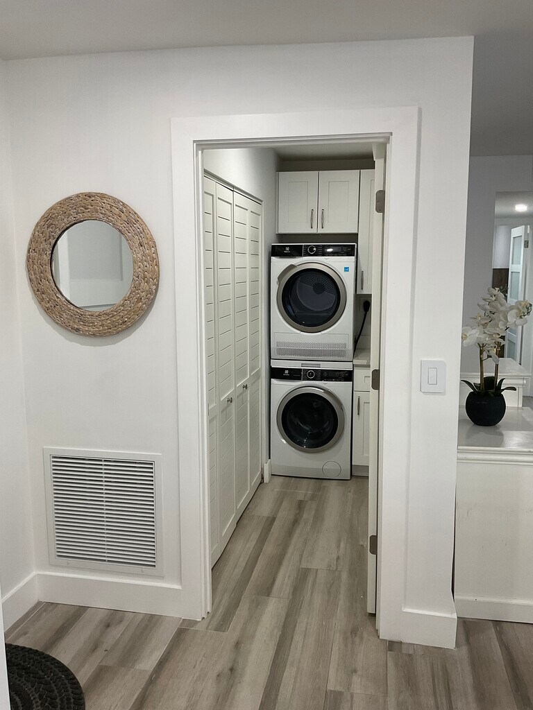 This newly renovated condo is available for long term lease only (12 months). Located at the 14th St bridge of the intracoastal in Pompano Beach. Corner ground floor, Conveniently located walking distance from the beach. 2 bedroom/2 full baths, with bonus pullout wall unit that has office space behind it. Wall unit pulls out for when in use, or just push it back for max space in the living room. All furniture is included as shown in pictures. Washer and dryer is in unit, no need to use common area laundry room. Parking spot is steps away from the front door. Water and Wi-Fi is included in the rent ! Pompano Boat launch park is located directly across the street. Pool area with bbq for grilling , Has small gym to work out in. Association requires minimum *700*credit score for all tenants.* REQUIRED: First, last month’s rent and security deposit, plus one additional month’s rent required for the association’s security. ( deposits are refunded at lease end ) NO pets allowed please.