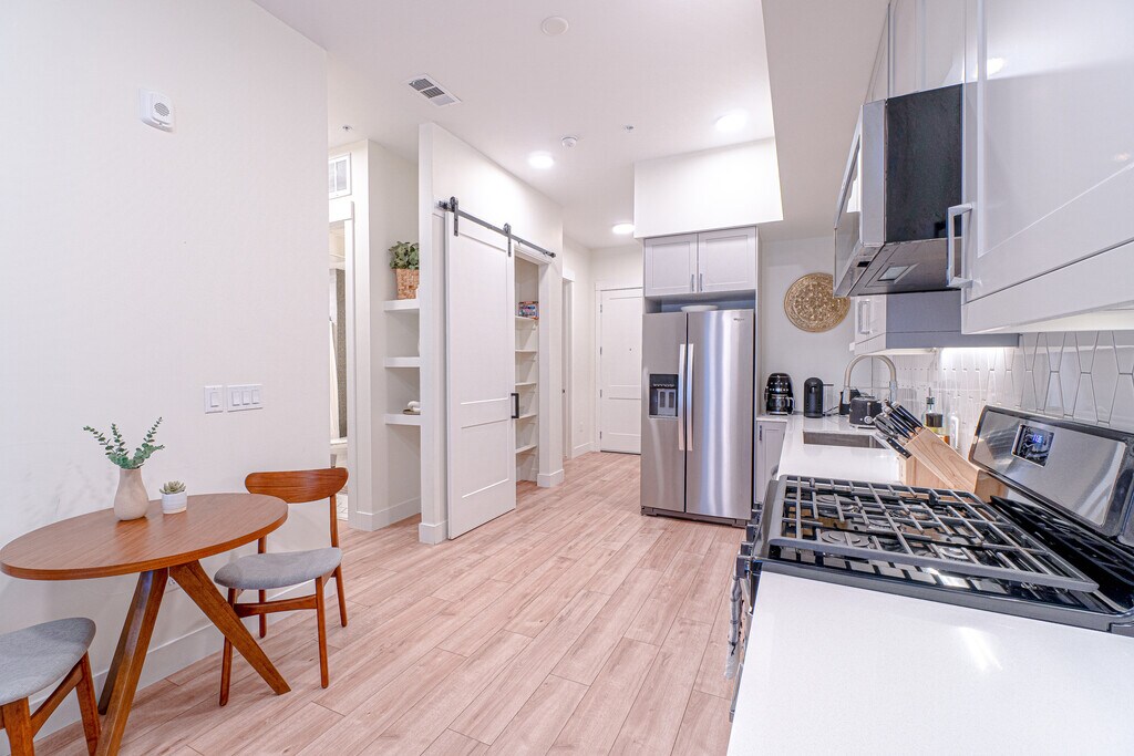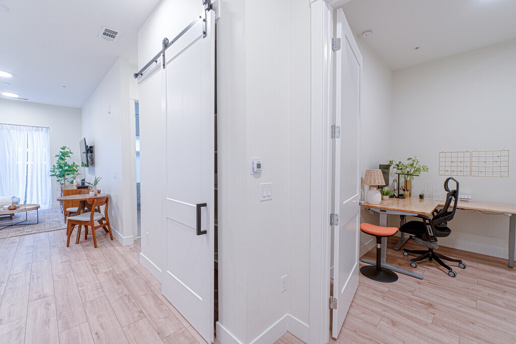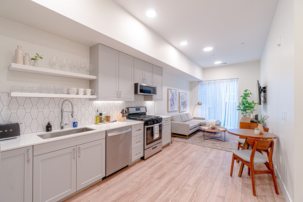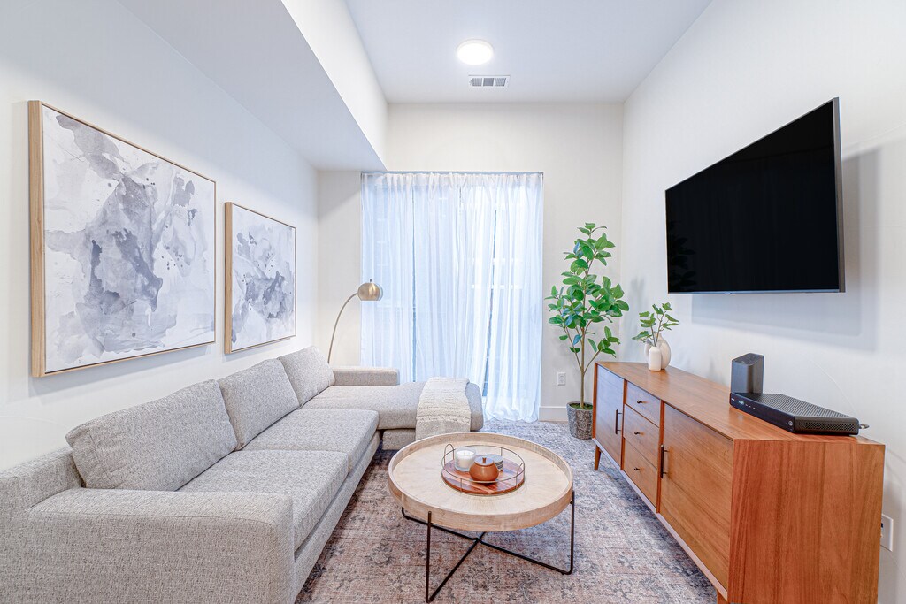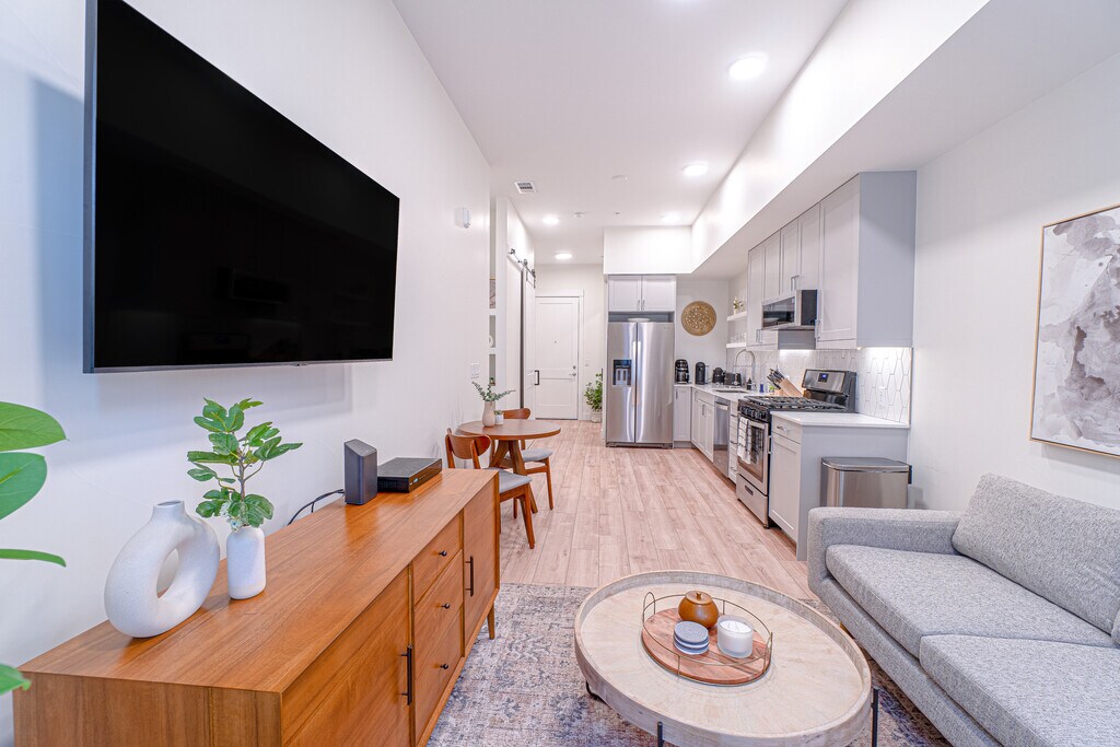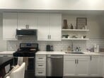 We have a brand-new construction condo available in Aria Zen Denver Condo development. Rent is $2,500 per month. It may be rented for a minimum of 30 days with no limits on length. This is 900 square feet. It comes with an underground parking space and an in-unit washer and dryer. Other amenities: Yoga room, heated dog wash area, community garden, community/social room, and secure parcel room. Your pets are welcome and come with a $300 non-refundable security deposit. Master bedroom is 12 X 13 (with a walk-in closet), and the office/studio (or second bedroom) is 10'7" X 8'7". It has a small closet in it. Room dimensions: Master bedroom: 12 X 12 9 Living Area: 9 11 X 11 Kitchen Area: 9 11 X 14 Office/Study: 10 7 X 8 7 The office is perfectly outfitted for a work-from-home professional. A stand-up desk from UpLift. Monitor, microphone, webcam. A few notes about the photos: At the time these photos were taken, the West Elm headboard and bed frame had not yet been delivered. Also, two more pieces of furniture had not been delivered: a mid-century style console for the living room and a dresser for the bedroom. These are here now, and I will add photos in October. The kitchen is fully outfitted. Enjoy SMEG appliances and a nespresso machine for your daily espresso! You will also have access to a storage locker. NEXT AVAILABILITY 4/15/2024