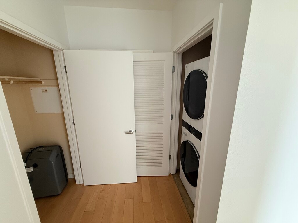 Modern, spacious 2 bedroom, 2 full bath Jack London condo for rent. This south and west facing corner unit is on the building’s top floor with huge windows with automated blinds boasting tons of natural light and beautiful panoramic views. Hardwood floors throughout the living area, carpeted bedrooms both with walk-in closets. Updated appliances, including in unit washer and dryer. Additional secured storage space located in the garage with 2 car tandem off-street parking. The building features a rooftop deck with sweeping views, garden, various community seating areas, and outdoor kitchen with gas BBQ and sink. Extremely walkable with easy access to 12th St and Lake Merritt Bart stations, the Alameda/SF Ferry, Amtrak, coffee shops, bars, restaurants and all that Jack London and Old Oakland have to offer.