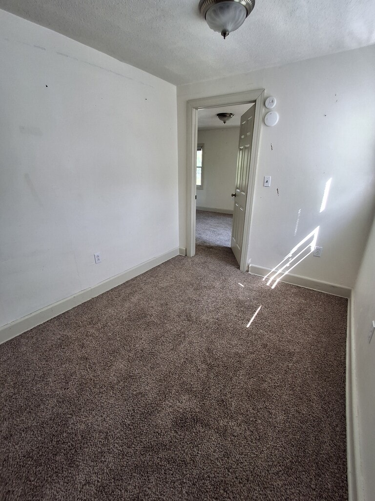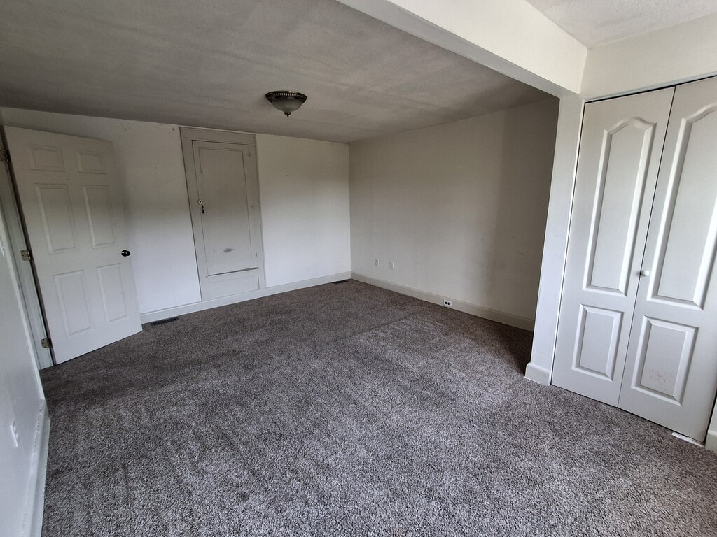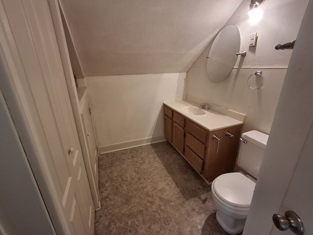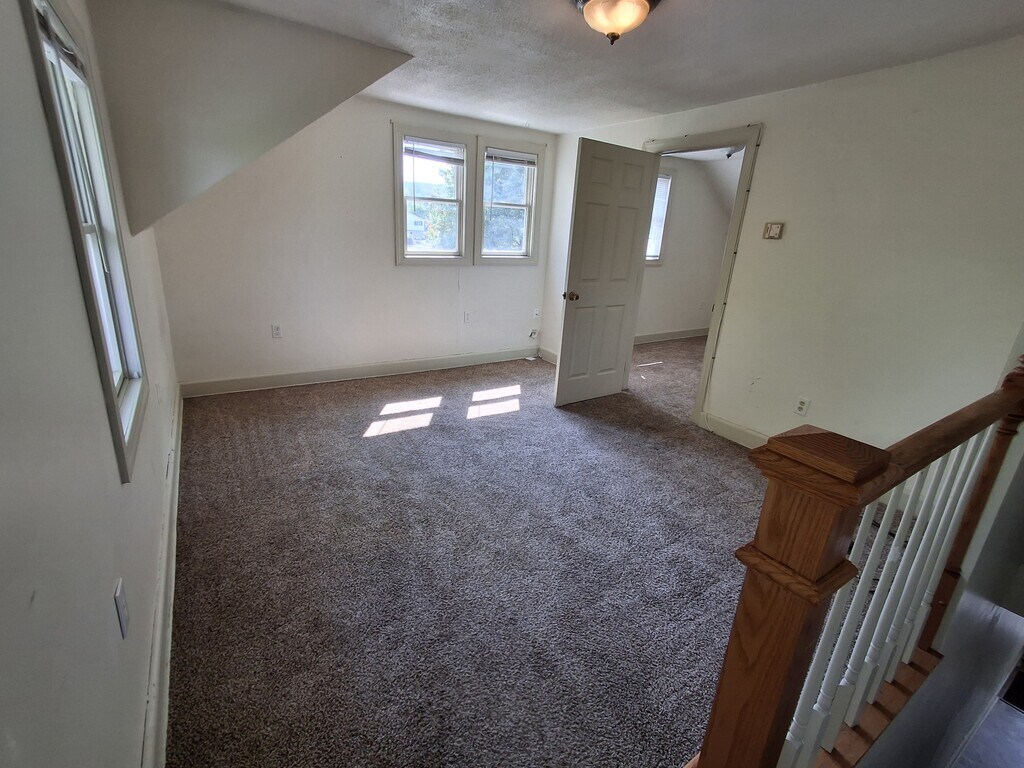 Utilities Included! Large common yard for three apartments. Quiet neighborhood. Laundry hookup in basement. The bedroom shape does not lend itself to a king size bed. A California queen would fit and a twin or full would work fine also.