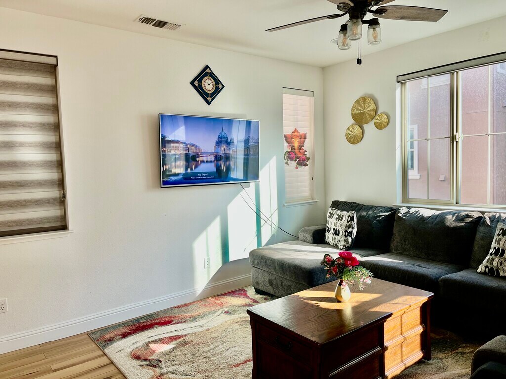 Beautifully Upgraded Home for Rent in Prime Livermore Location Welcome to this stunning, light-filled home packed with premium upgrades. Enjoy a cute low-maintenance backyard with turf, custom blinds, brand-new smart appliances, new flooring, and custom closet shelving throughout. The spacious kitchen features a large island, perfect for cooking and entertaining. With all 3 bedrooms offering attached bathrooms, the layout is ideal for privacy and convenience including a guest bedroom on the first floor with an attached bathroom. The luxurious master suite features a king-size bathtub, creating a relaxing retreat. The home also includes a two-car garage with epoxy flooring. Located within walking distance to downtown Livermore and the ACE train station, this home offers exceptional accessibility. Situated in Livermore's open school district, families enjoy flexibility in school selection, and most local children attend the top-rated Lawrence Elementary School. Perfect for those seeking high-end living in one of Livermore's most desirable locations! Tenant pays the utilities like water, trash, electricity and internet.