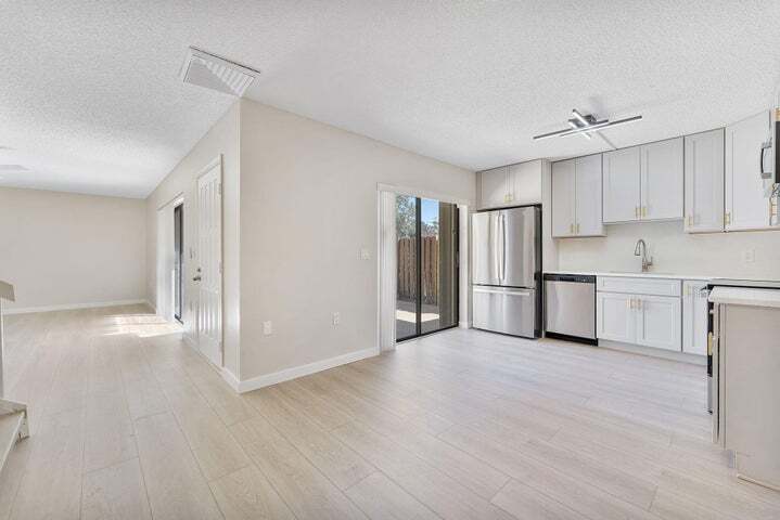 Updated 2-bedroom, 2½-bath townhouse located in the heart of Delray Beach. This move-in-ready residence features brand-new luxury vinyl flooring throughout, a completely renovated kitchen with modern cabinetry, sleek countertops, and all new stainless-steel appliances. The spacious layout offers two generously sized bedrooms with primary en-suite bath upstairs, plus a convenient half bath on the main level--perfect for guests. Enjoy seamless indoor-outdoor living with your own private courtyard, ideal for entertaining, relaxing, or creating your own tropical retreat. Nestled in Delray Oaks West, this desirable community with a prime location close to I-95, shopping, dining, and the beach, offers style, comfort, and convenience all in one. Listed by: Century 21 Stein Posner