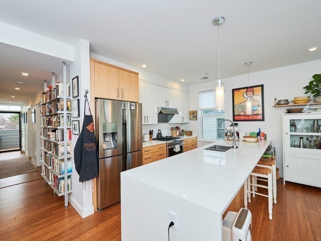 Welcome to 290 Highland Ave #3A, a next-level living experience in the heart of Davis Square. This thoughtfully designed 3-bedroom, 3-bath residence offers direct elevator entry, blending privacy, convenience, and modern sophistication. Inside, you’ll find a seamless open layout with wide-plank wood flooring, recessed lighting, and oversized Marvin windows that flood the space with natural light. The chef’s kitchen features custom cabinetry, gas cooking, and premium Samsung appliances, while the living space is enhanced with integrated Sonos sound and smart climate control—all accessible from your phone. The primary suite delivers true retreat vibes, complete with an en-suite bath, oversized walk-in closet, and refined finishes throughout. Step outside to your private deck, perfect for morning coffee or unwinding at the end of the day. Built with sustainability in mind, this home is LEED-certifiable and includes tankless on-demand hot water, offering both efficiency and long-term savings.