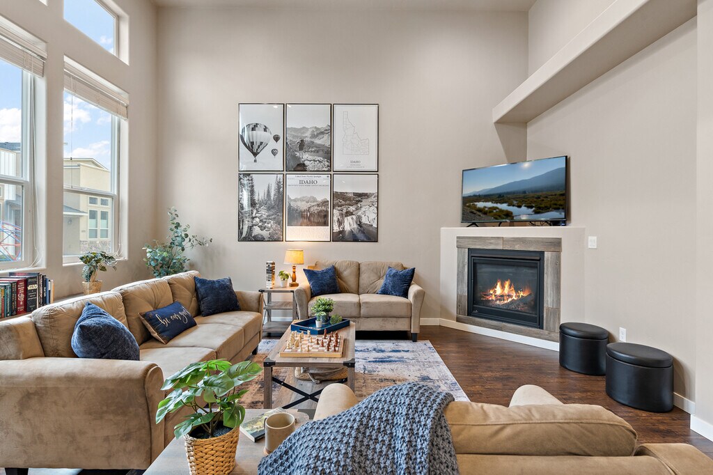 Offered UNFURNISHED Charming townhouse close to virtually everything you could possibly need or want in the Meridian-Boise area! The property features a connected two-car garage and driveway, main entry on the ground floor, no neighbors below or above, only one shared wall with a neighbor to the north, and a fenced-in side yard to the south. The home includes three well-sized bedrooms, each with its own private, connected full bathroom and large closets. The master suite is conveniently located downstairs. The other two bedrooms are upstairs. There is an additional half bathroom in the hallway downstairs. The kitchen boasts recessed lighting to highlight its beautiful granite countertops (no unsightly grout!). The stand-in pantry offers multiple shelves for storing dry goods and extra supplies. The kitchen appliances include a refrigerator, dishwasher, microwave, stove, and oven. The dining area comfortably accommodates 3-4 people at the kitchen island bar and a 6-8 person table. In the living room, you'll love the high ceilings and expansive windows that bring in plenty of natural light. The home features two zones for heating and cooling, with ceiling fans in all three bedrooms. Additionally, in the winter, cozy up in the living room by the natural gas fireplace! Upstairs, the laundry closet includes a side-by-side washer and dryer. Beyond the laundry area, you'll find the two upstairs bedrooms, each with its own full bathroom. Heading out? High-end shopping, great restaurants, fast food, movie theaters, entertainment options (e.g., Top Golf, Wahooz), large outdoor parks, access to the Boise River, and more are just minutes away. There's also easy access to the freeway, airport, and nearby Bogus Basin Ski Resort! The neighborhood: - Family-friendly, quiet, and well-maintained - Shared amenities include a climbing dome, picnic tables, walking paths, and a basketball court