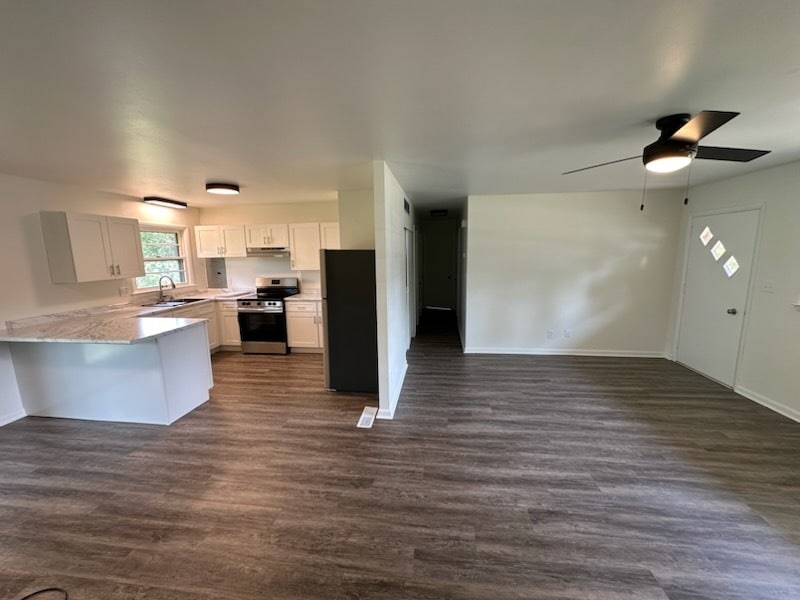 Completely remodeled 3 bedroom, 2 bathroom home in the Shawnee School District! New flooring, paint, bathrooms, kitchen, garage door, and more! Situated on a corner lot with a private backyard & covered patio! No pets, no smoking inside. Apply today!