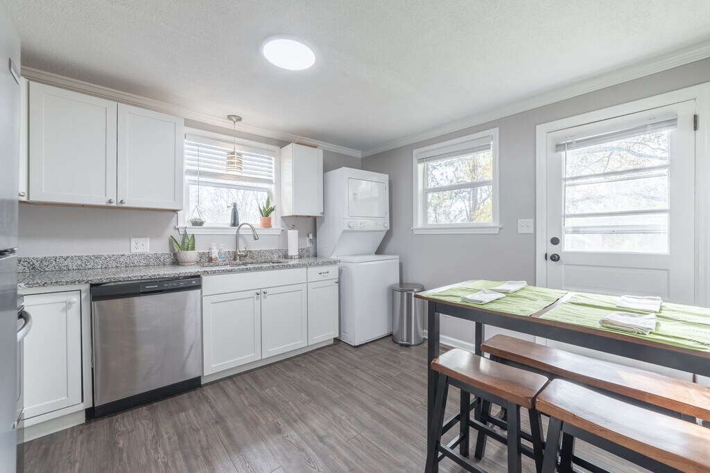Remodeled 2 bedroom, 1 bath apartment (duplex) in NW Hickory. Brand new engineered hardwood floors, granite countertops, stainless steel appliances (dishwasher and microwave included), new windows, new HVAC, new ceiling fans, stackable washer/dryer included.