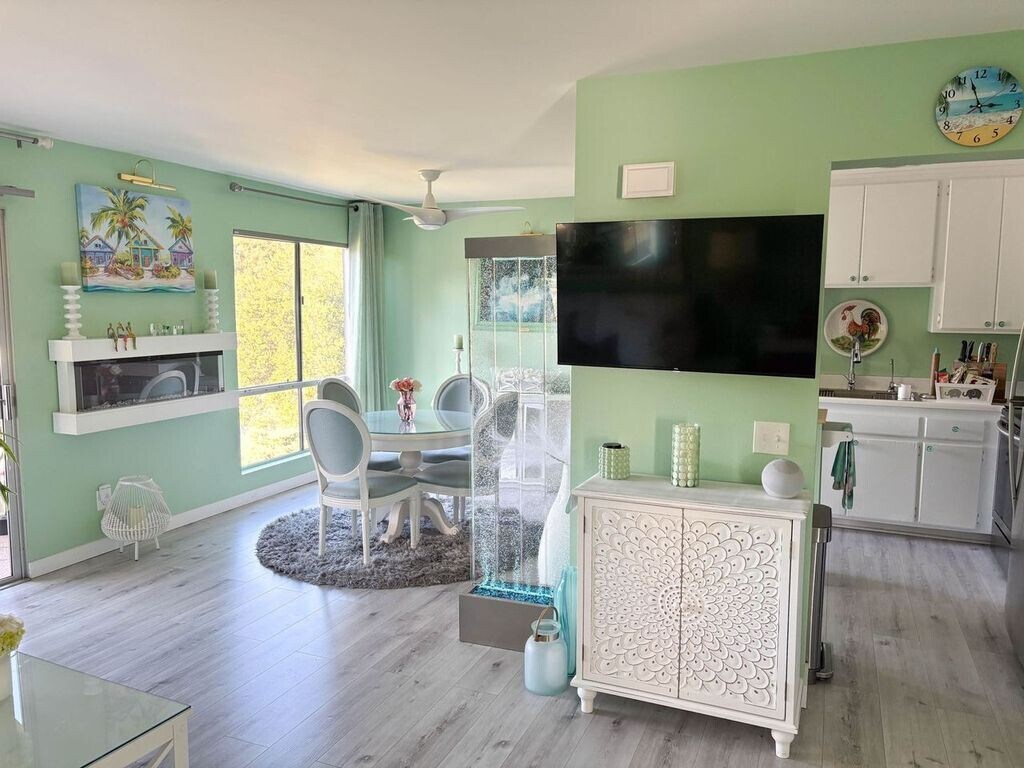 This is an over 55 age complex, but you may be 45 and up to live here. This is one of the nicest units in this complex. Light, airy, open with beautiful views from every room. This is an end unit, so very private.It is not furnished as shown, but does come equipped with flat screen tv in living room and master bedroom. Both bedrooms have their own bathroom. Kitchen has a center island as shown in photos. A handsome sleigh bed with mattress can be included if needed. Must be seen to be fully appreciated. 6 - 12 month lease. Looking for a professional person with good credit.