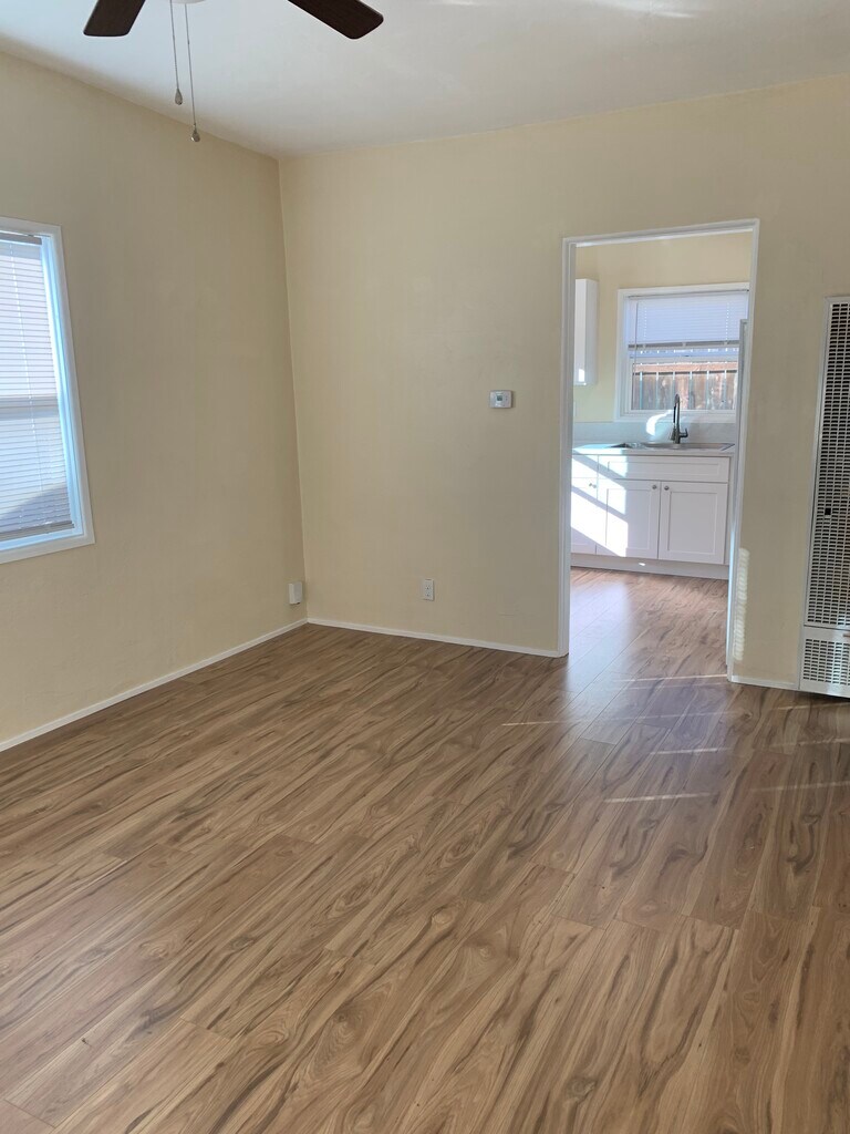 Completely remodel kitchen and bathroom, new flooring and windows. 1-bedroom, 1-bathroom single story duplex in Spring Valley, approximately 500 sf. with private parking space adjacent to unit, private gated backyard, washer and gas dryer hook-ups. Rent includes trash collection, front yard maintenance and water. Pets allowed upon approval. Se habla Espanol