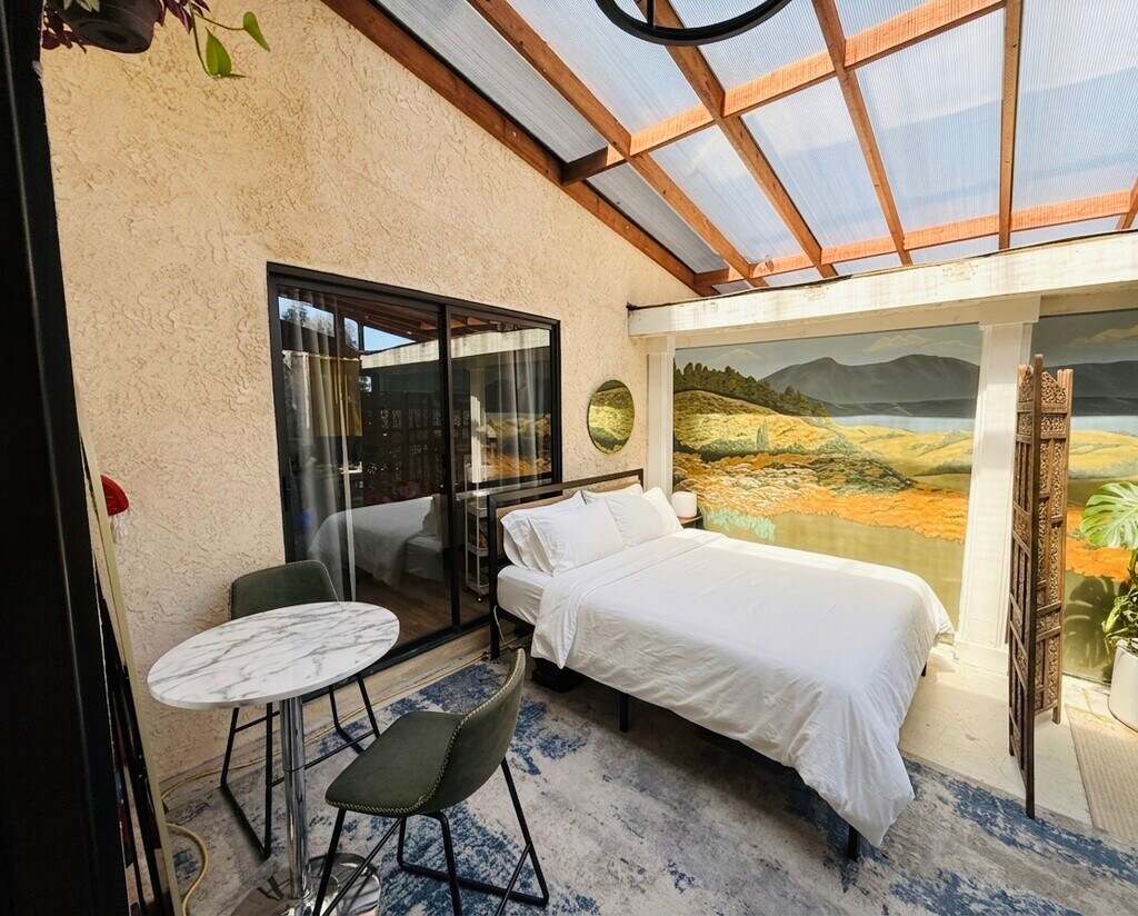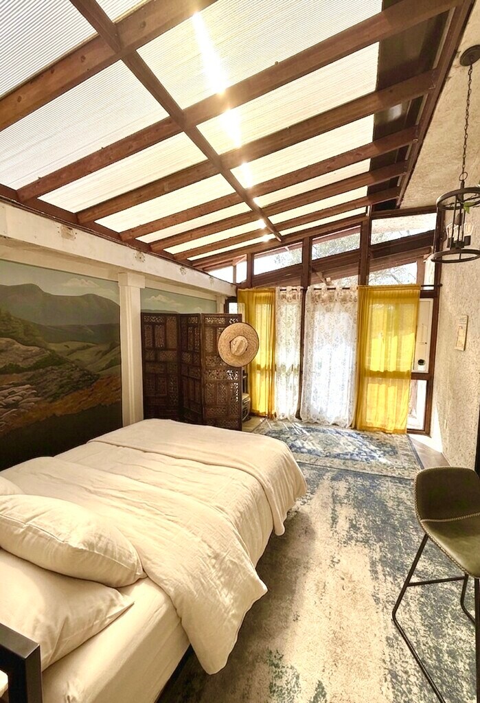 Beautiful furnished Hollywood Hills hillside home available for a 3-month minimum stay. This unique approximately 1,300 sq ft residence offers much more space and character than a typical 1-bedroom rental. The home includes 1 primary bedroom, 1 bathroom, a huge living room, full kitchen, generous storage, entry room, separate laundry room, dedicated workspace, and a bonus Arizona room set up as an additional sleeping/flex space. The home is fully furnished and also includes a 75-inch TV in the living room and a 55-inch TV in the bedroom, making it especially comfortable for longer stays. What makes this property especially rare is the multi-level outdoor living. Enjoy a large private deck with beautiful hillside views, a gazebo lounge area, a fountain garden level with seating, and a grassy lower yard with bougainvillea and mature landscaping. Because the home sits on a hillside, it also has an elevated, peaceful feel with lovely outlooks from the upper level. Ideal for a professional, couple, relocation stay, extended visit, or anyone looking for a peaceful furnished home in Los Angeles. Features include: * Fully furnished * 1 primary bedroom * Bonus Arizona room with extra sleeping/flex setup * 1 bathroom * Approx. 1,300 sq ft * Huge living room * 75-inch TV in living room * 55-inch TV in bedroom * Dedicated workspace / study area * Full kitchen * Separate laundry room with washer and dryer * Generous storage * Entry room * Large private deck * Gazebo lounge area * Fountain garden level * Grassy lower yard * Beautiful hillside views * Parking included